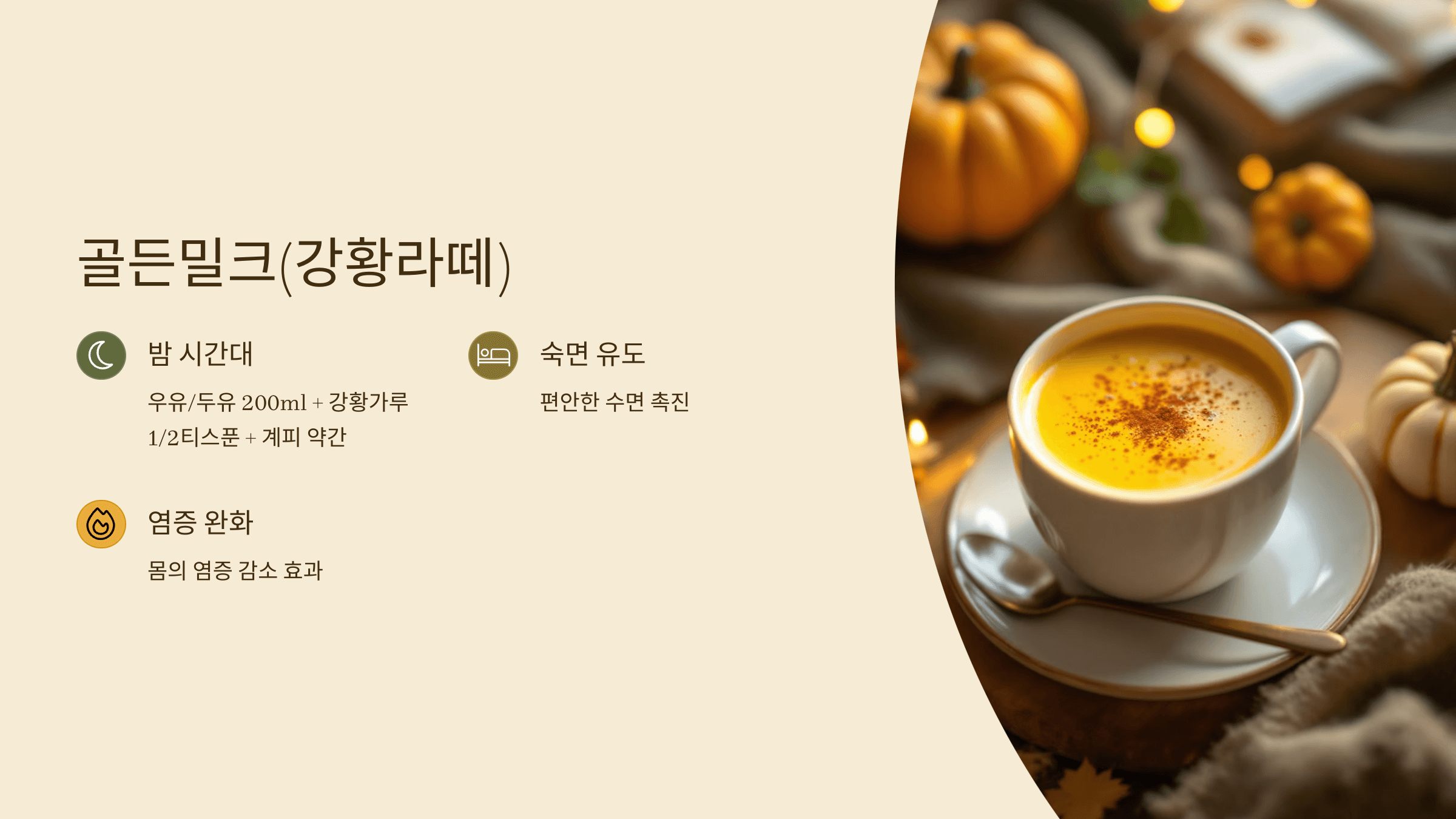 - 피곤한 날: 커피 대신 골든밀크 한 잔으로 기력 회복!