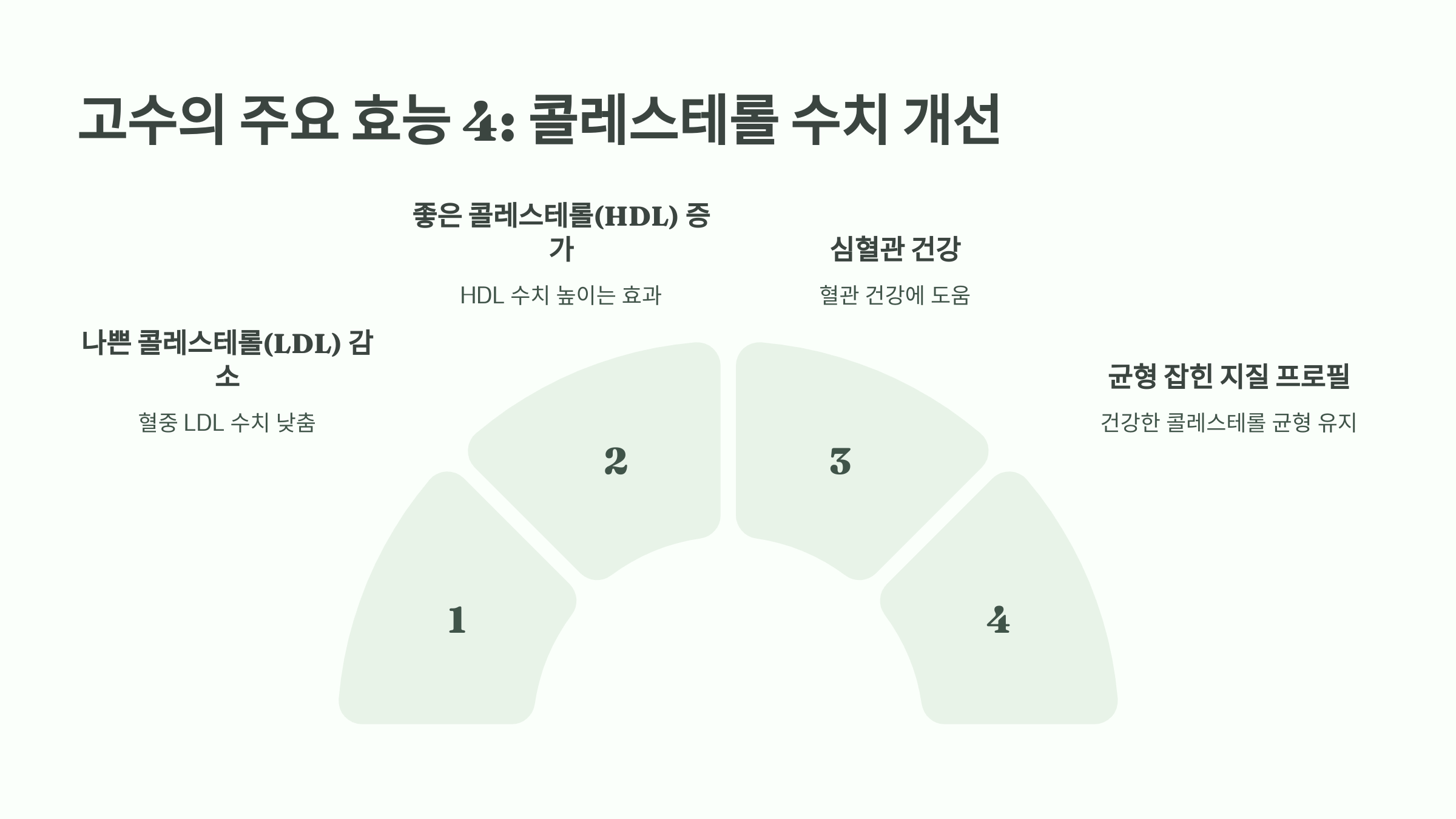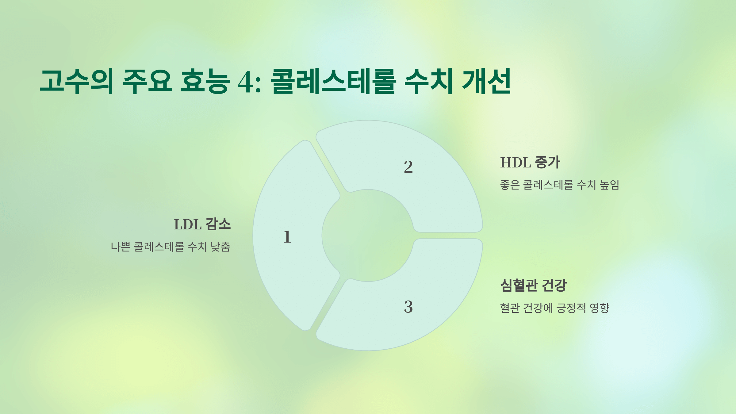 고수는 혈중 나쁜 콜레스테롤(LDL)을 낮추고, 좋은 콜레스테롤(HDL)은 높여주는 작용을 해요.
