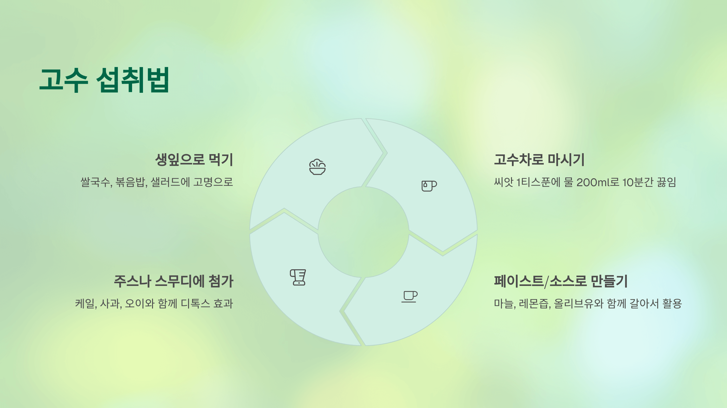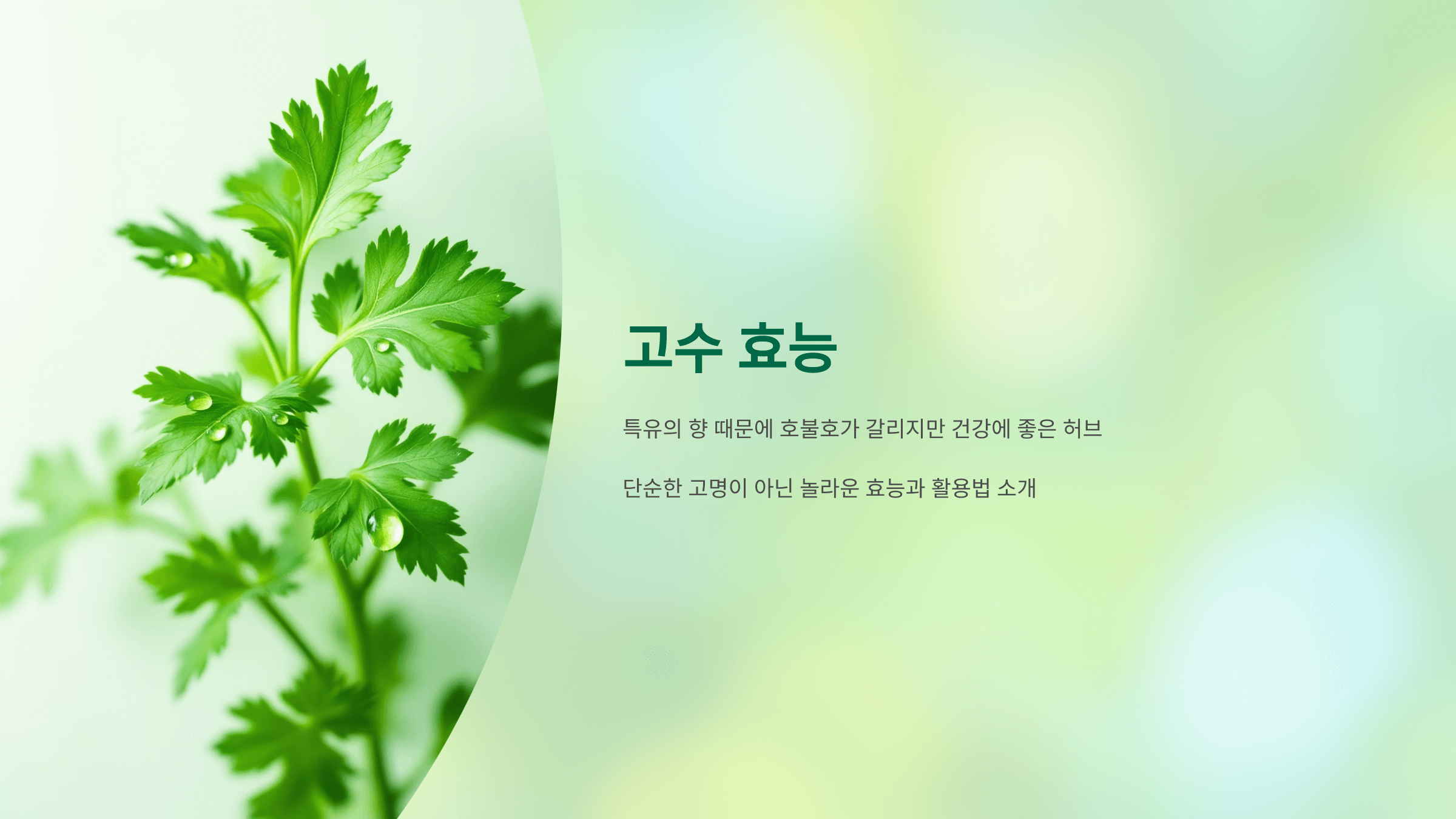 단순히 요리 고명으로만 쓰기엔 너무 아까운 고수! 고수의 놀라운 효능과 활용법, 지금부터 자세히 알려드릴게요.