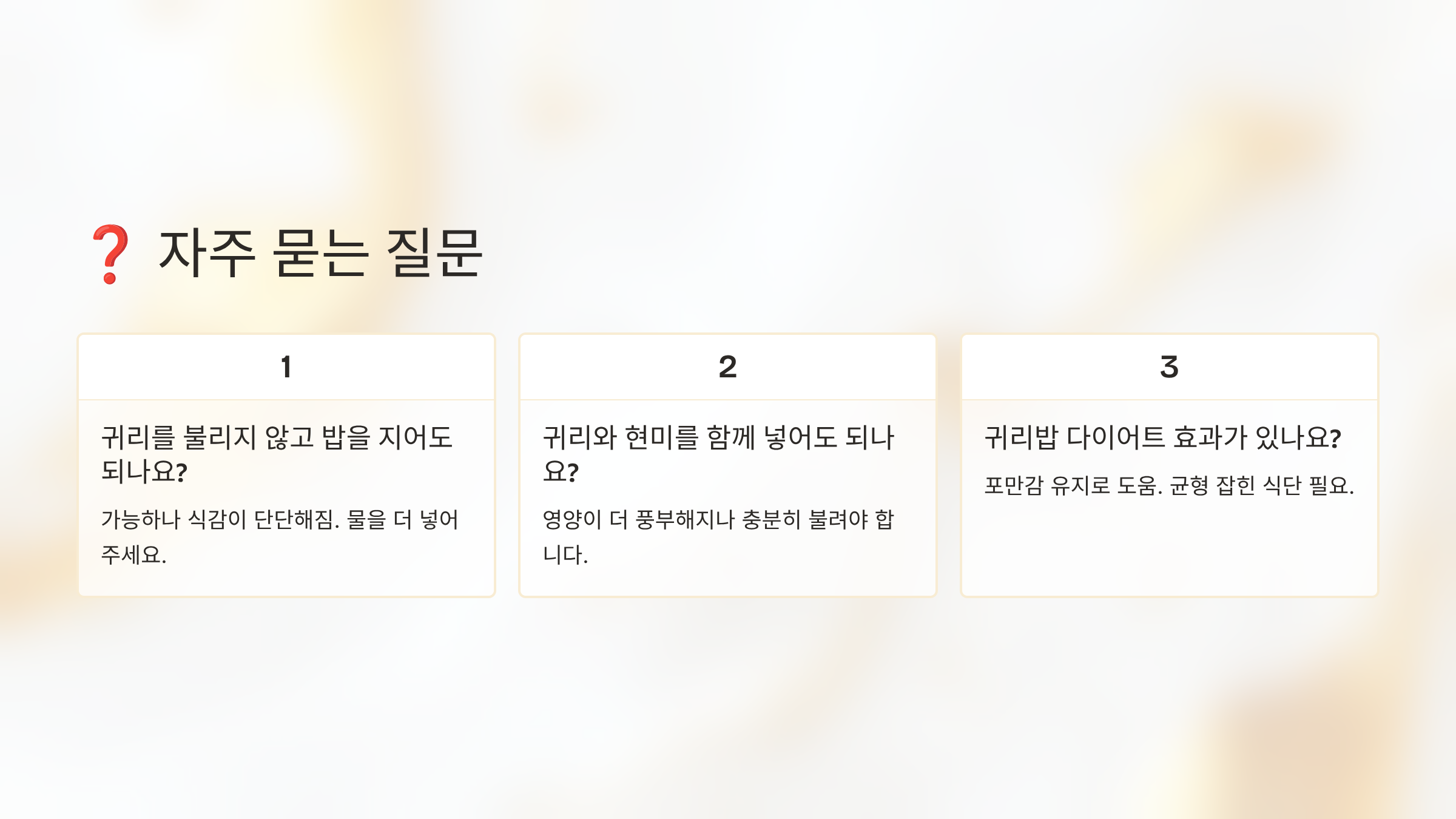 Q1. 귀리를 불리지 않고 밥을 지어도 되나요?