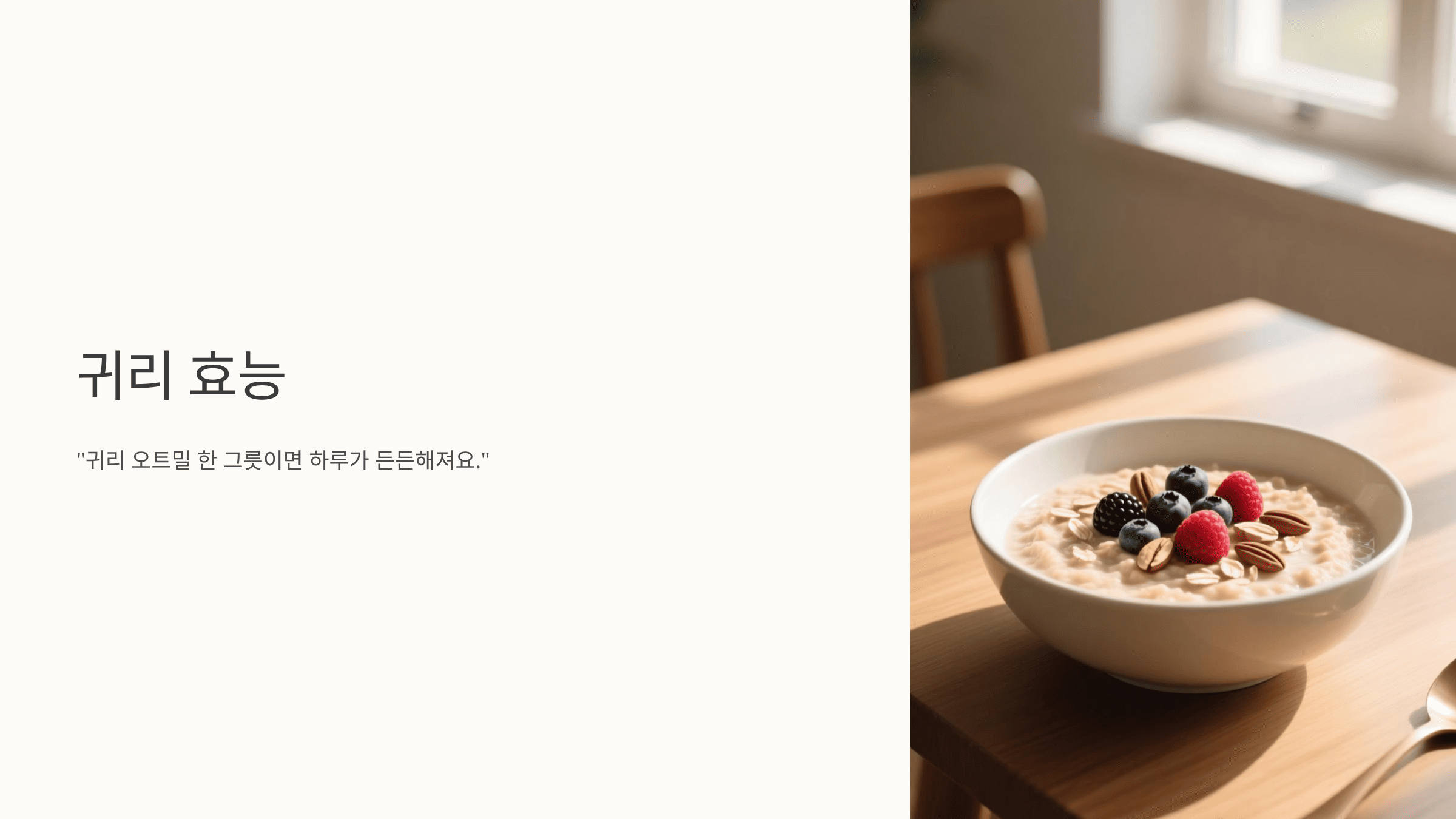 “귀리 오트밀 한 그릇이면 하루가 든든해져요.”