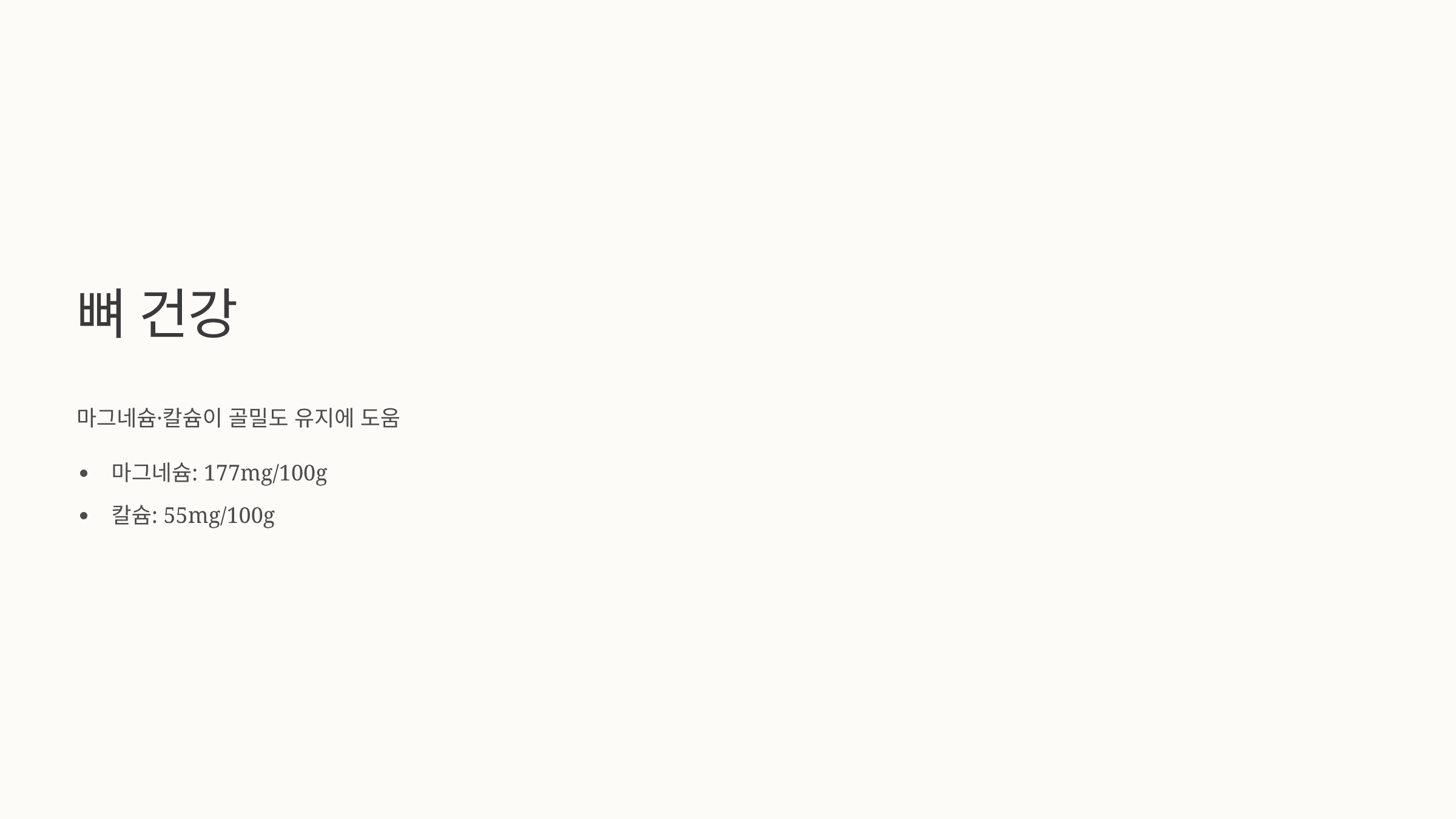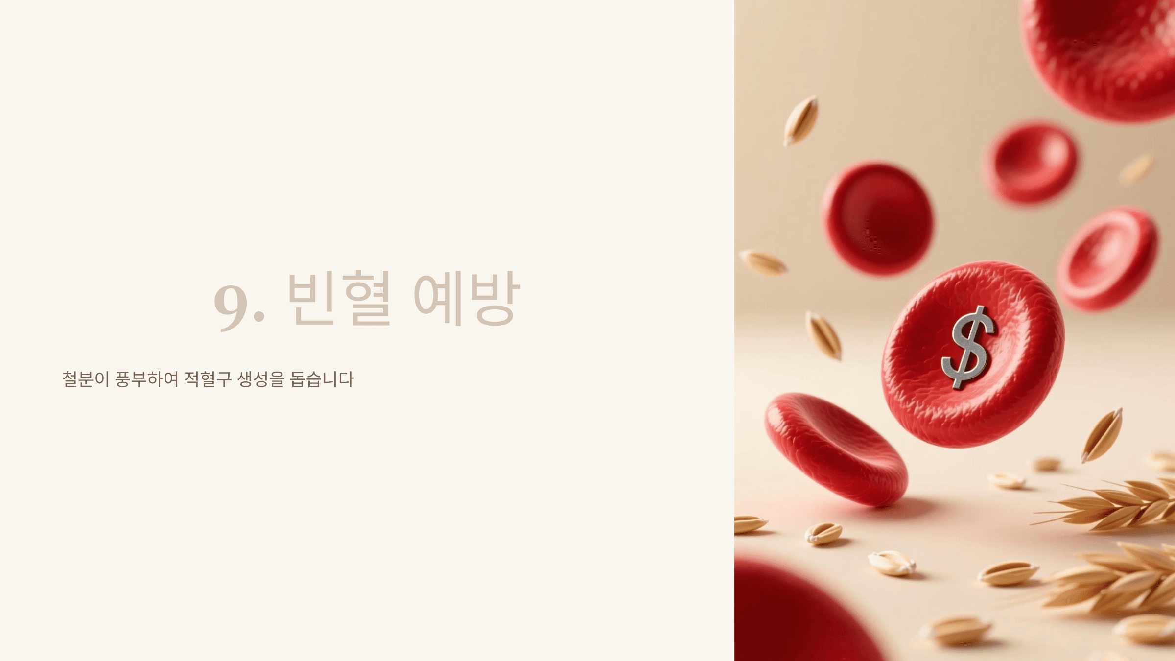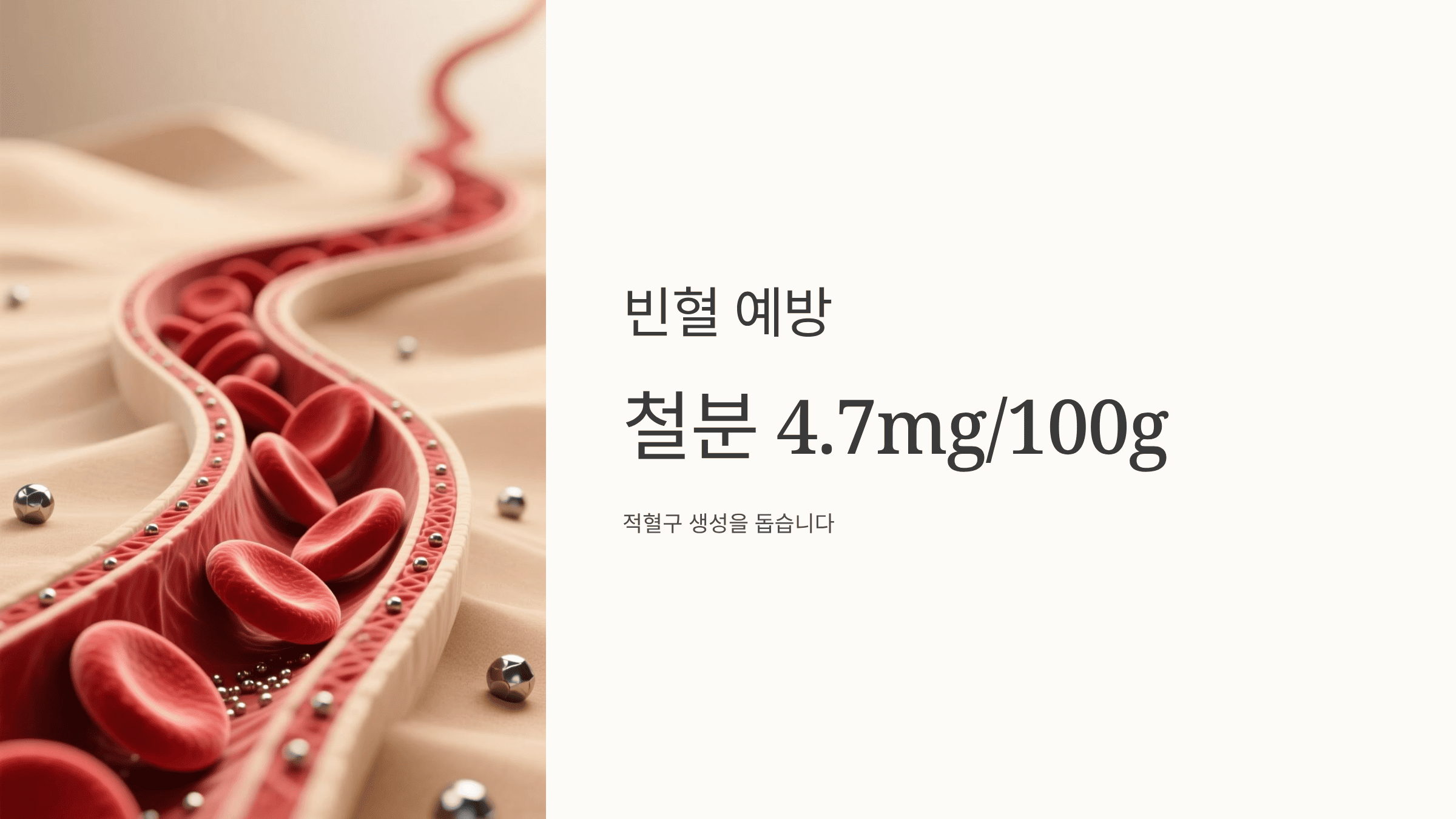 철분이 풍부하여 적혈구 생성을 돕습니다.