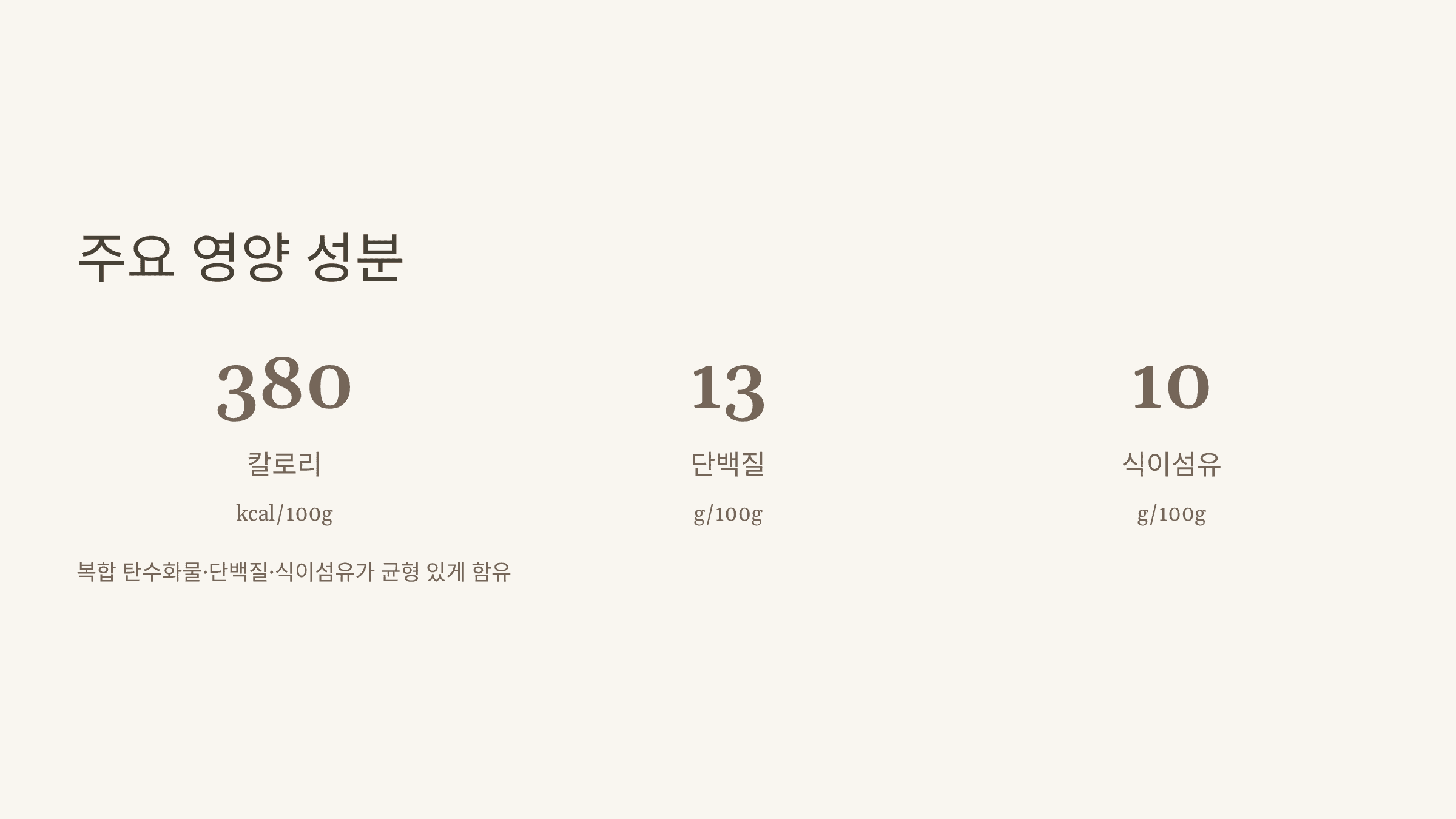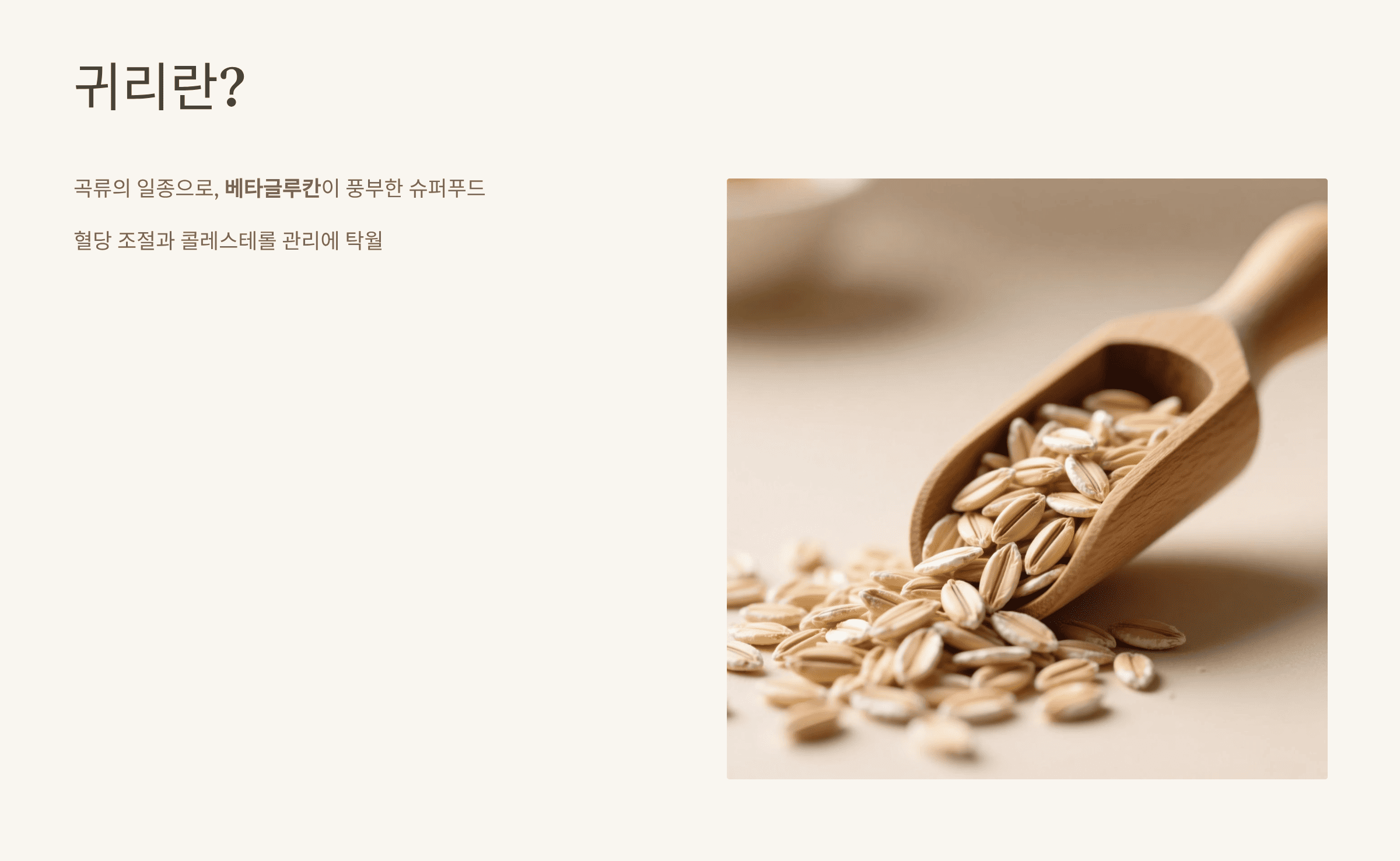 베타글루칸이 풍부해 혈당 조절과 콜레스테롤 관리에 탁월한 슈퍼푸드입니다.