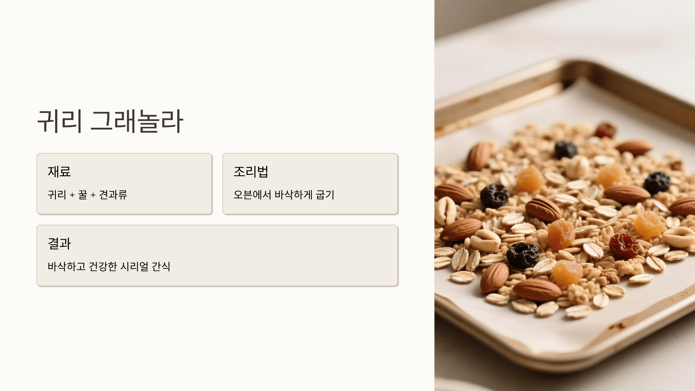 귀리 + 꿀 + 견과류 + 오븐 구이