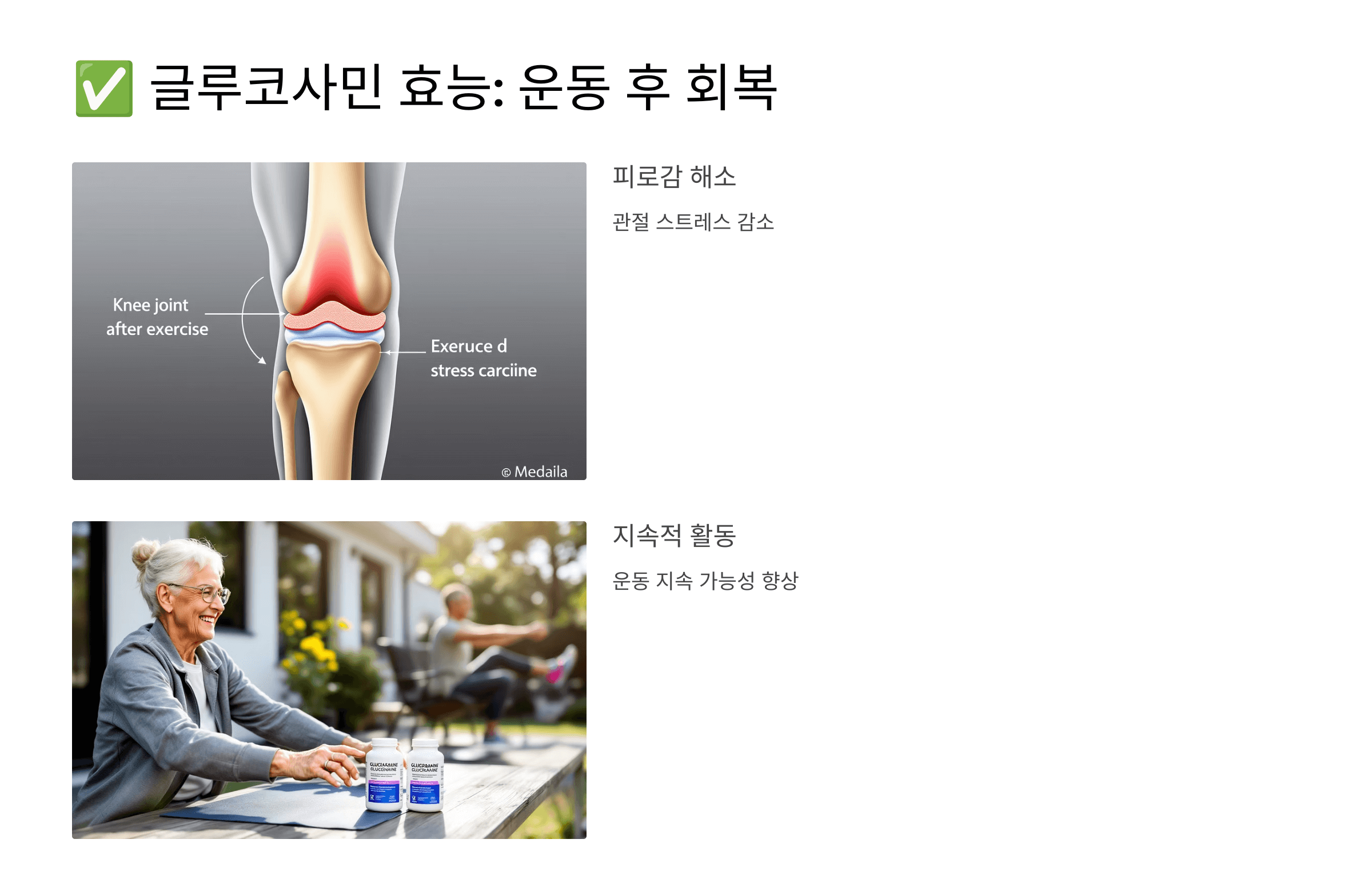 운동 후 발생할 수 있는 관절 마찰 및 미세 손상 회복에 효과적이에요.