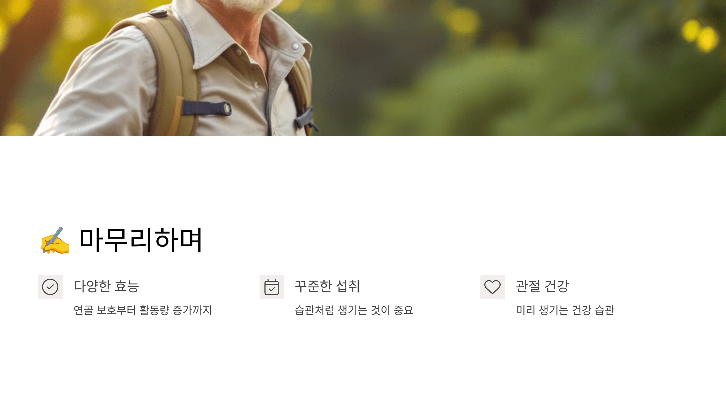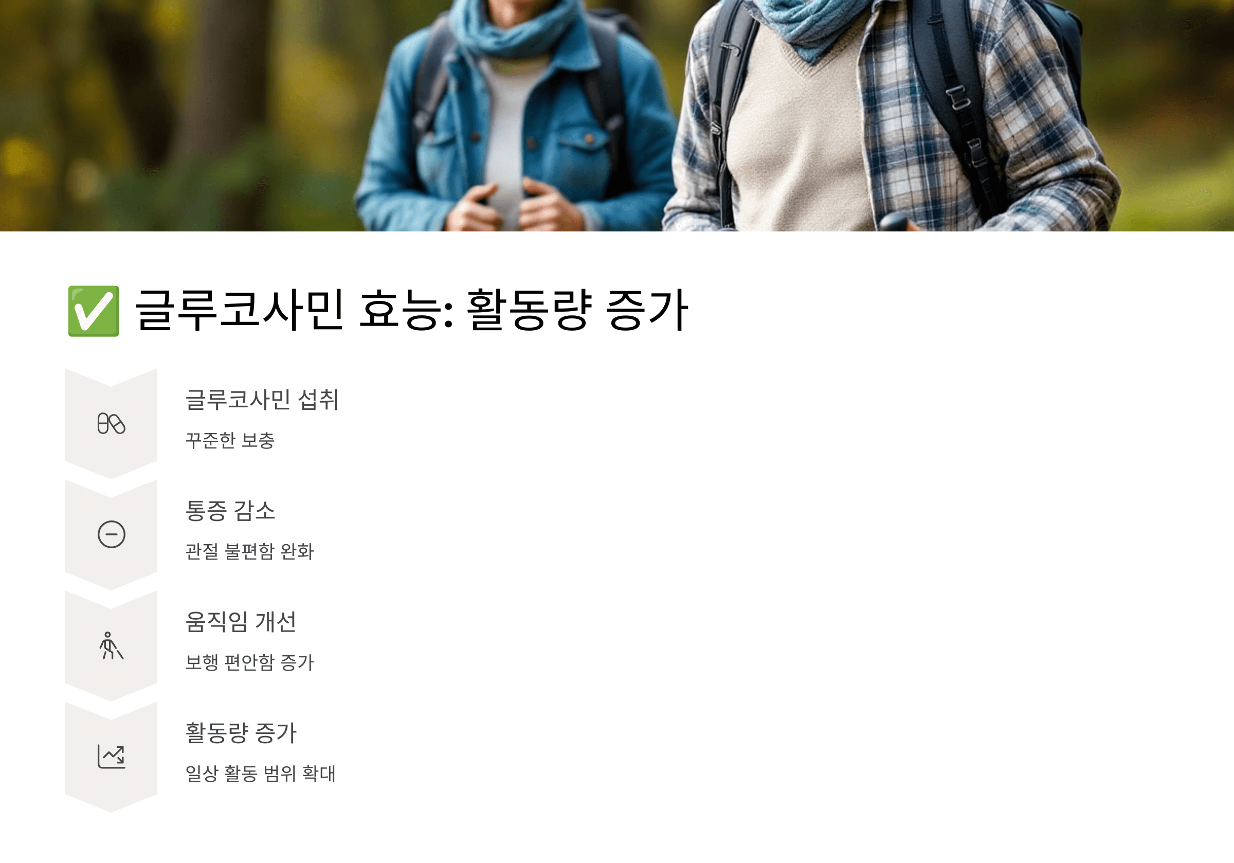 저도 글루코사민 복용 이후, 걷는 게 한결 편해졌어요.