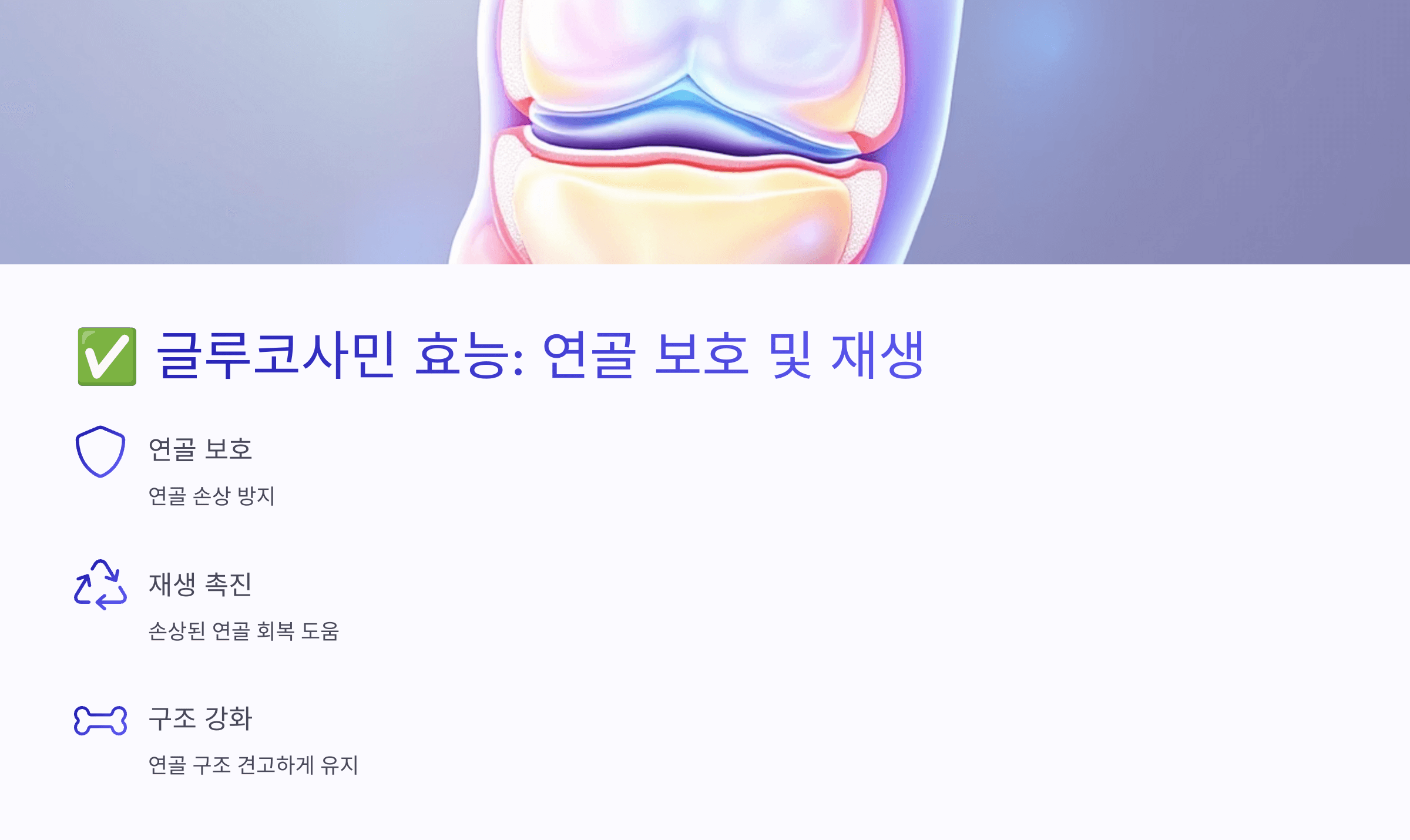 손상된 연골을 보호하고 재생을 도와줘요.