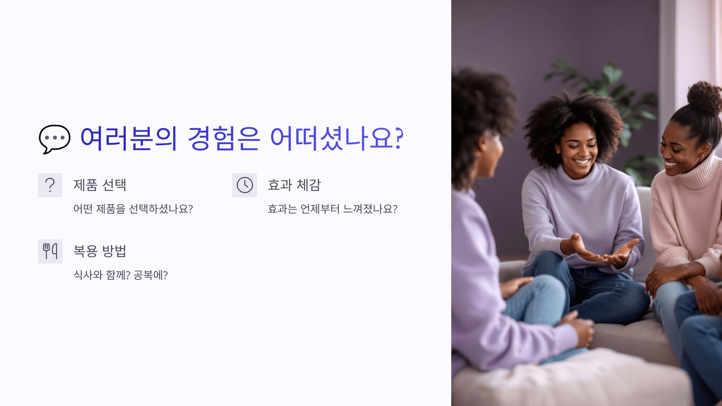 - 어떤 제품을 선택하셨고, 효과는 언제부터 느껴졌나요?