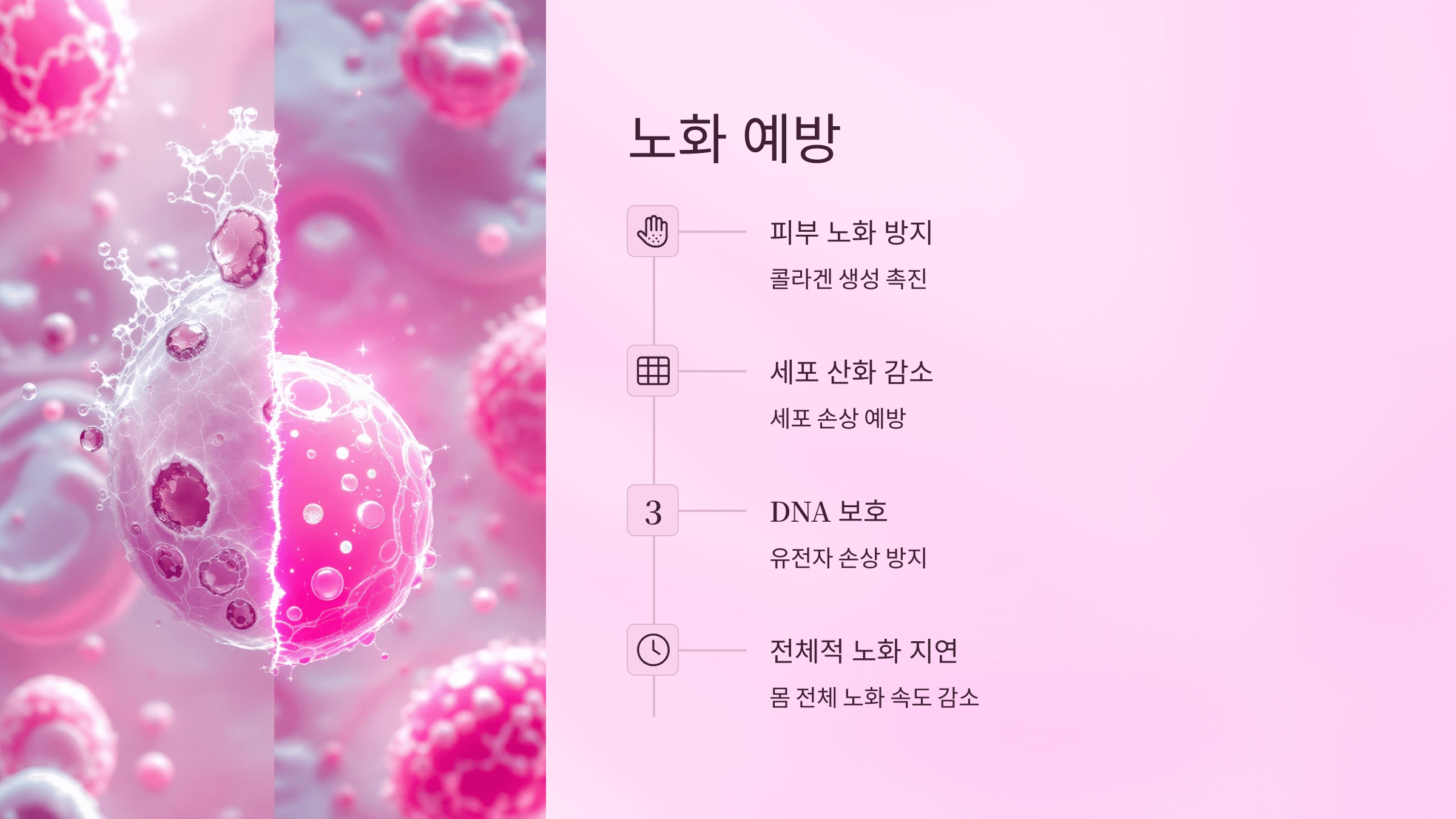 노화를 유발하는 산화 스트레스를 줄여주면서, 세포를 보호해요.
