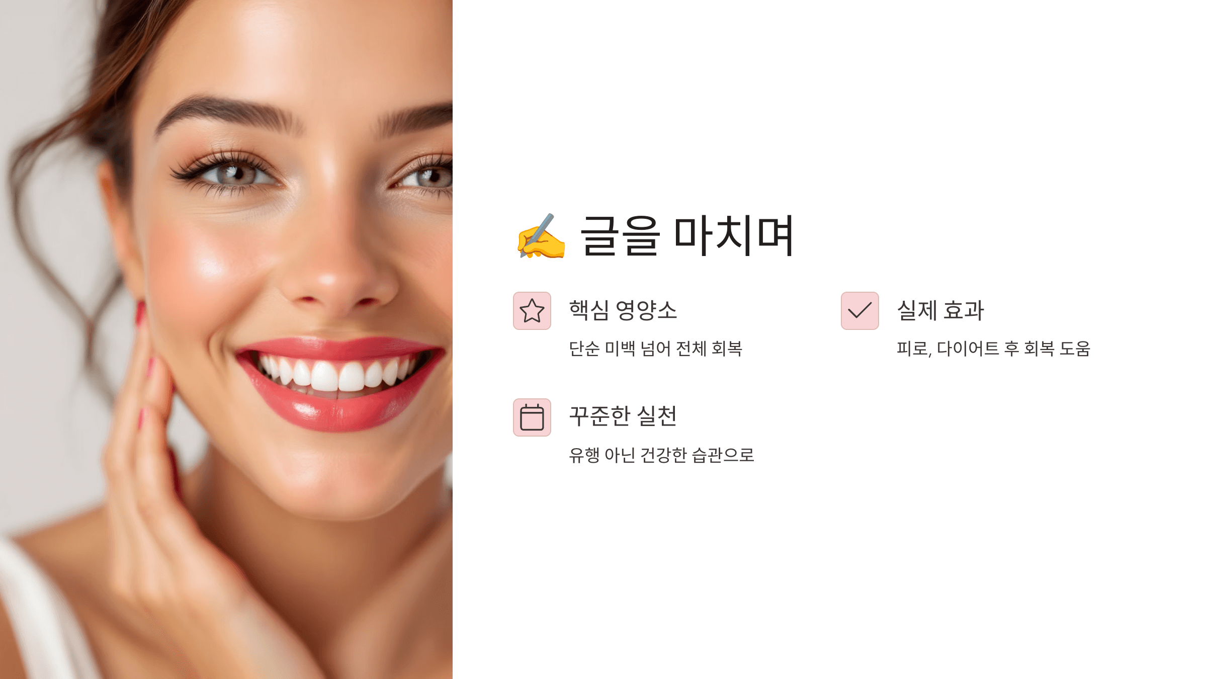 여러분이 섭취 후 느낀 변화나 추천하고 싶은 제품이 있다면 댓글로 공유해주세요.
