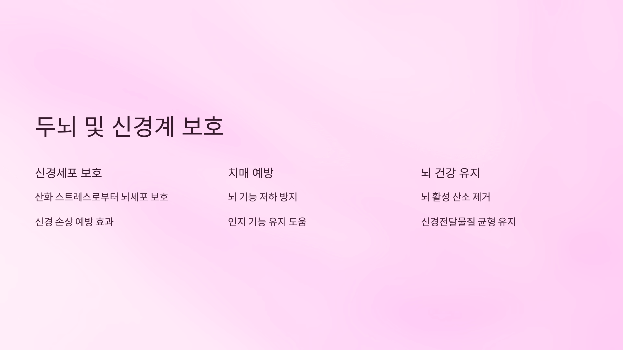 신경세포 손상을 막아 치매 예방이나 뇌 건강 유지에도 도움을 줄 수 있어요.