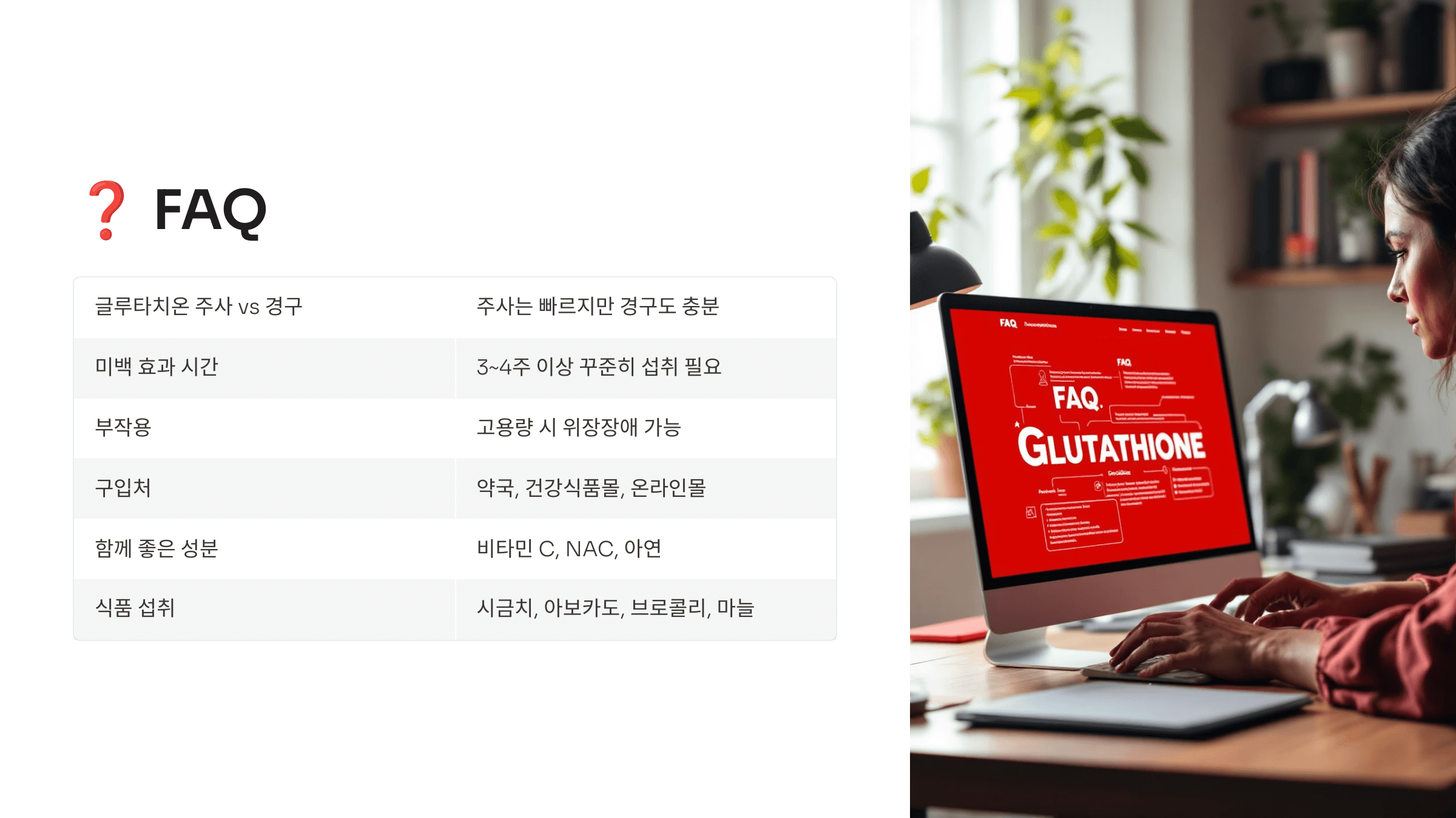 👉 효과만 놓고 보면 주사가 빠르지만, 꾸준한 관리엔 먹는 글루타치온도 충분해요.