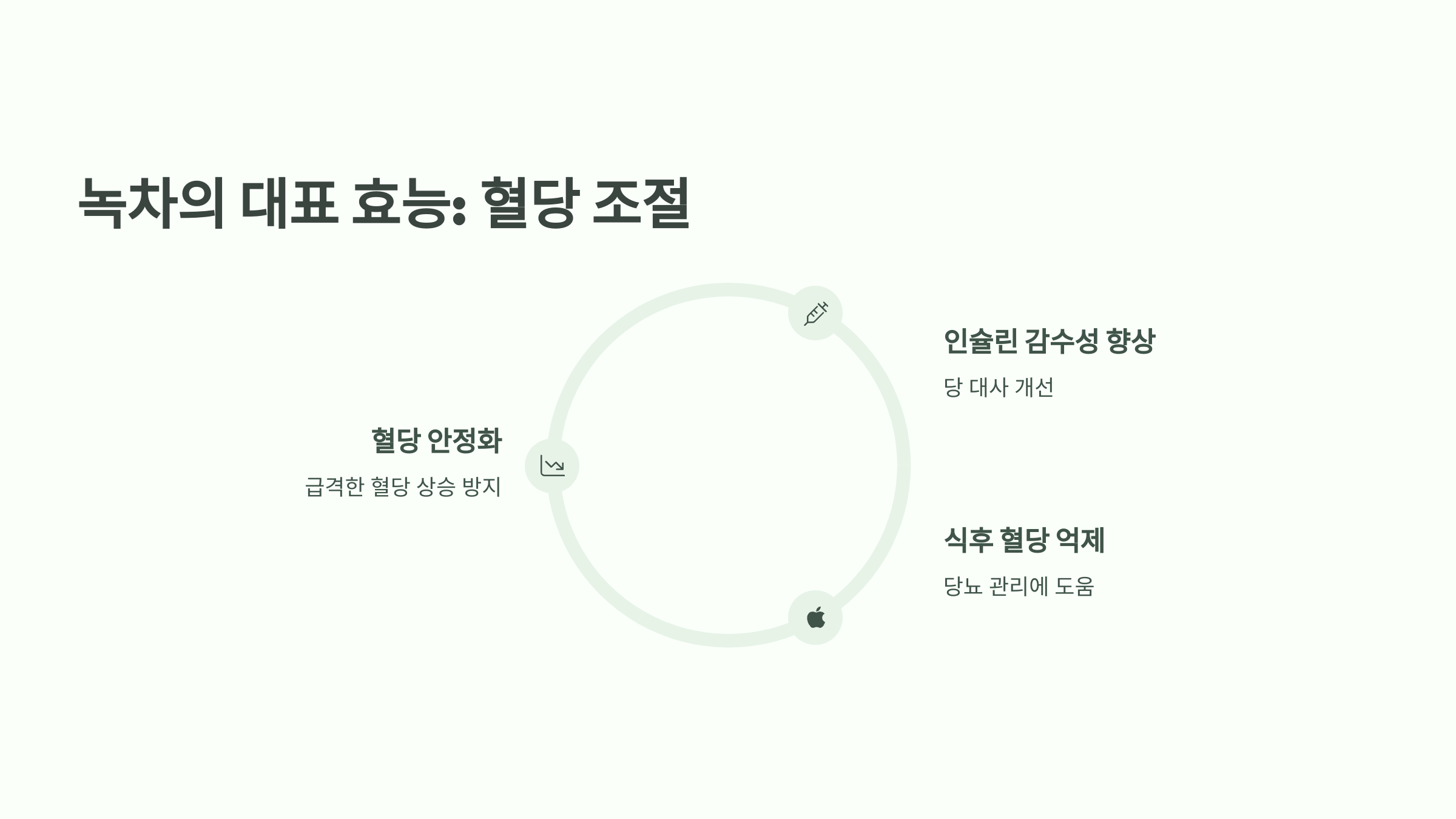 녹차는 인슐린 감수성을 향상시키고, 혈당 수치를 안정화시켜 당뇨 예방 및 관리에 도움을 줍니다.