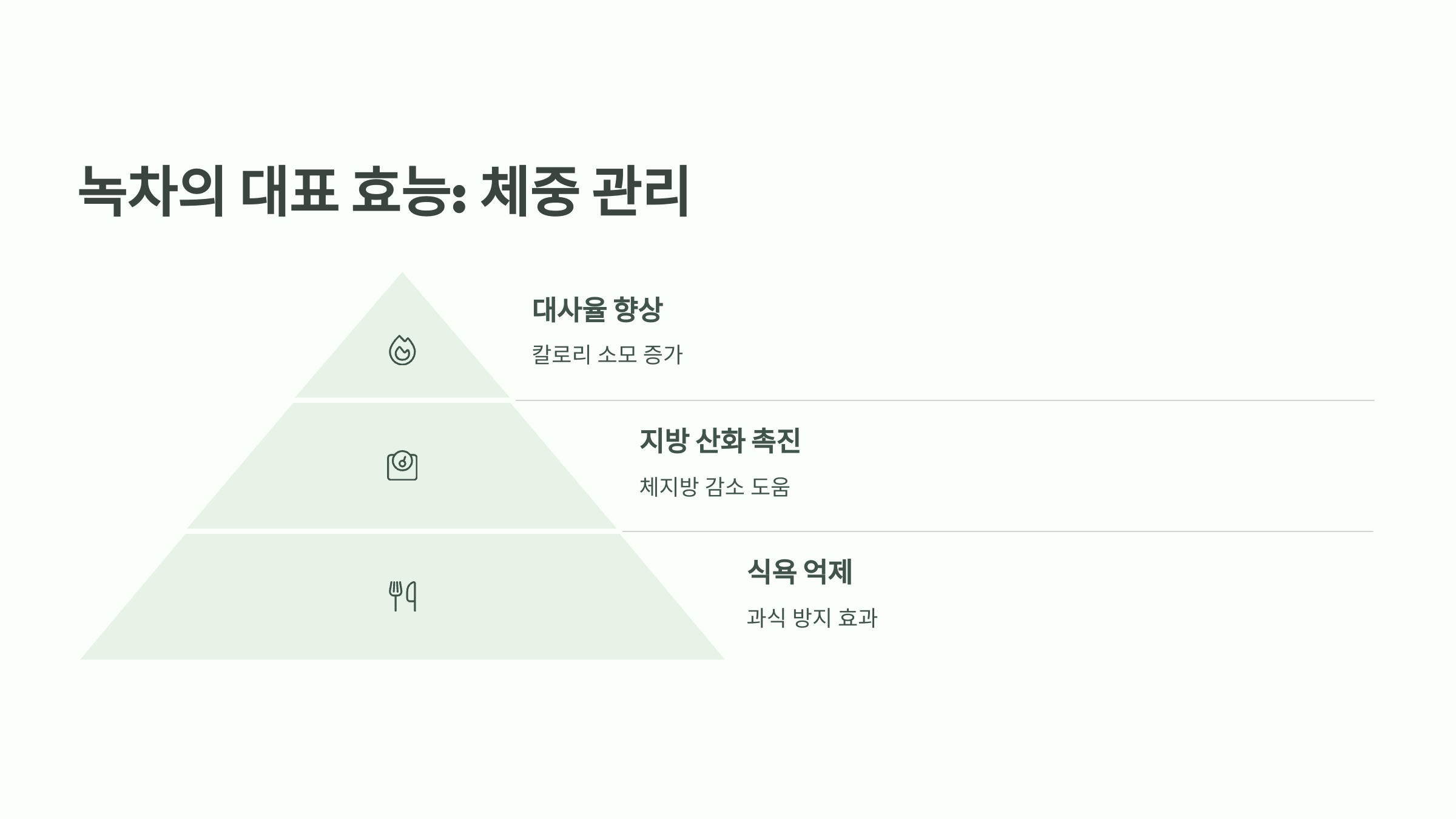 A. 녹차는 대사율을 높이고 지방 산화를 촉진하여 체중 관리에 도움을 줍니다.