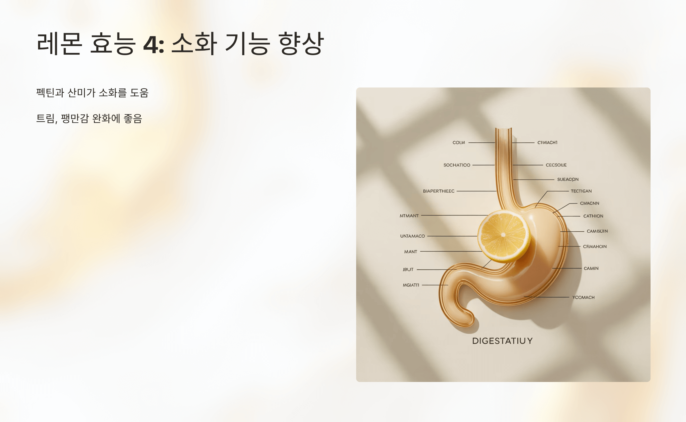 레몬 속 펙틴(수용성 식이섬유)이 장을 부드럽게 해 변비 개선에 도움을 줍니다.