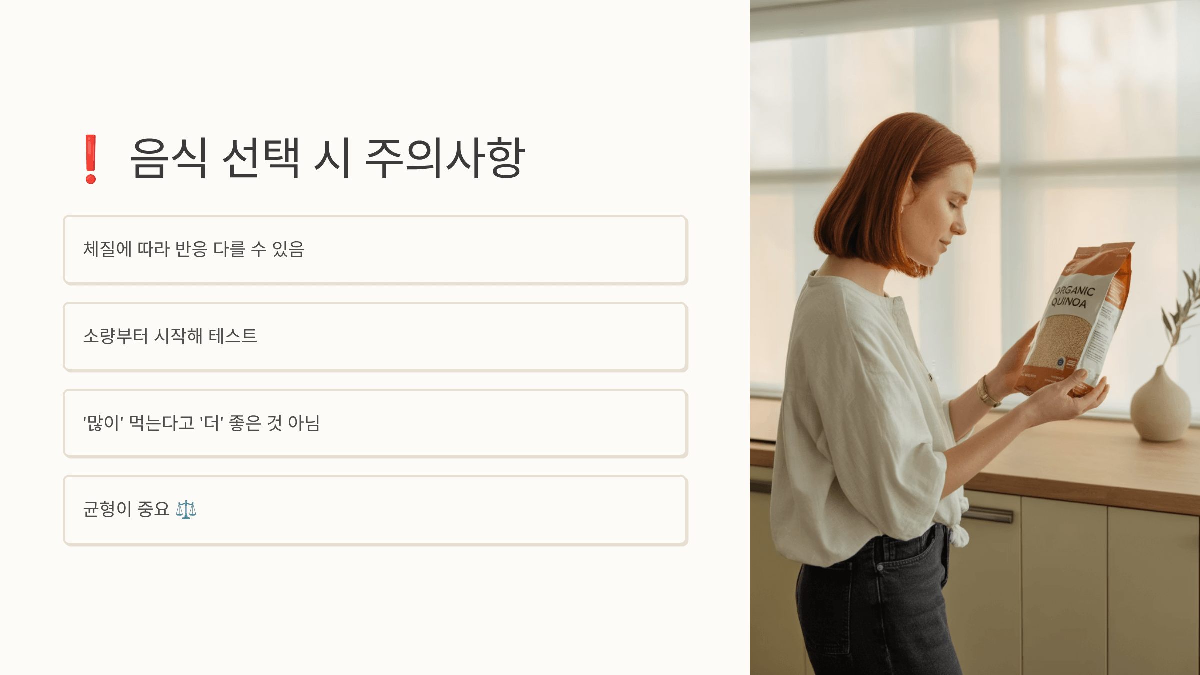 - 음식 선택 시 주의사항