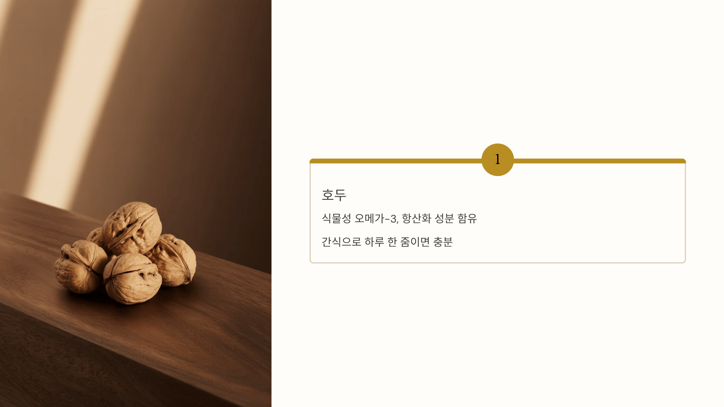 식물성 오메가-3와 항산화 성분을 동시에 섭취할 수 있어요. 간편하게 간식으로 챙기기 좋고, 하루 한 줌이면 충분합니다.