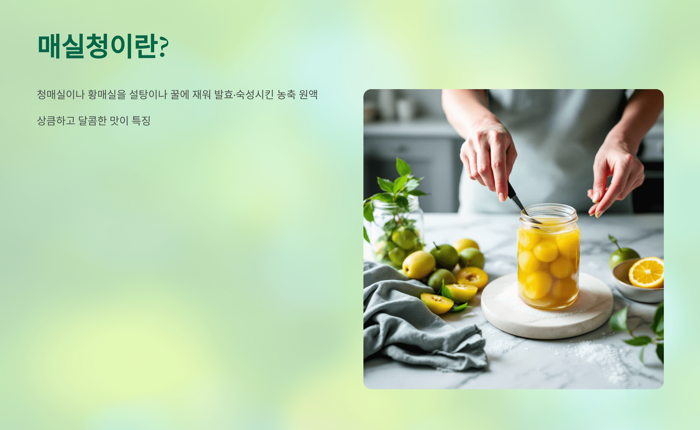 매실청은 건강과 맛을 동시에 챙길 수 있는 완벽한 건강 습관이에요.