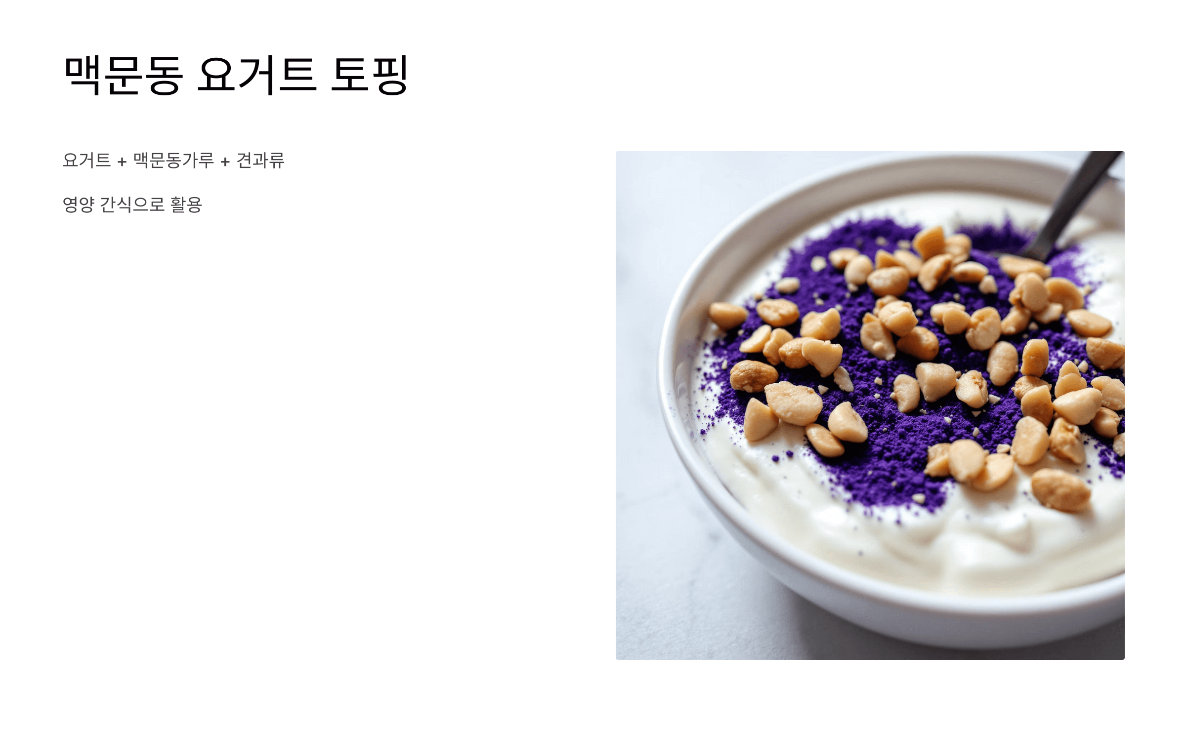 요거트에 맥문동가루와 견과류를 올려 영양 간식으로 즐기세요. - 맥문동 밥물 🍚