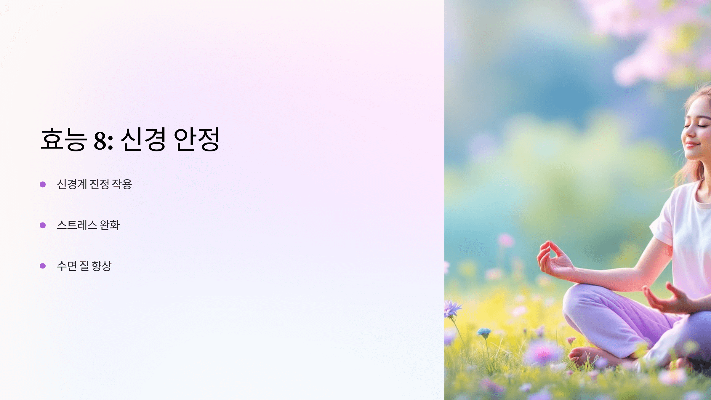 맥문동은 신경계 진정 작용이 있어 스트레스 완화와 수면 질 향상에도 기여합니다.