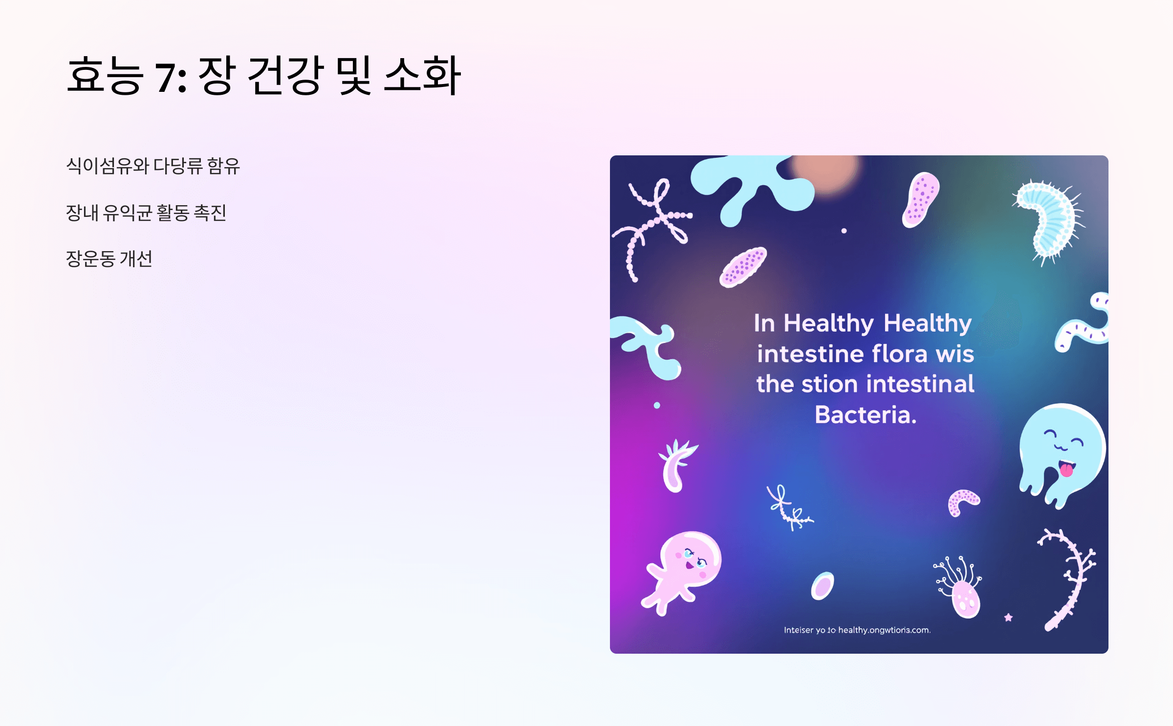 식이섬유와 다당류가 장내 유익균 활동을 도와 장운동 촉진에 좋습니다.