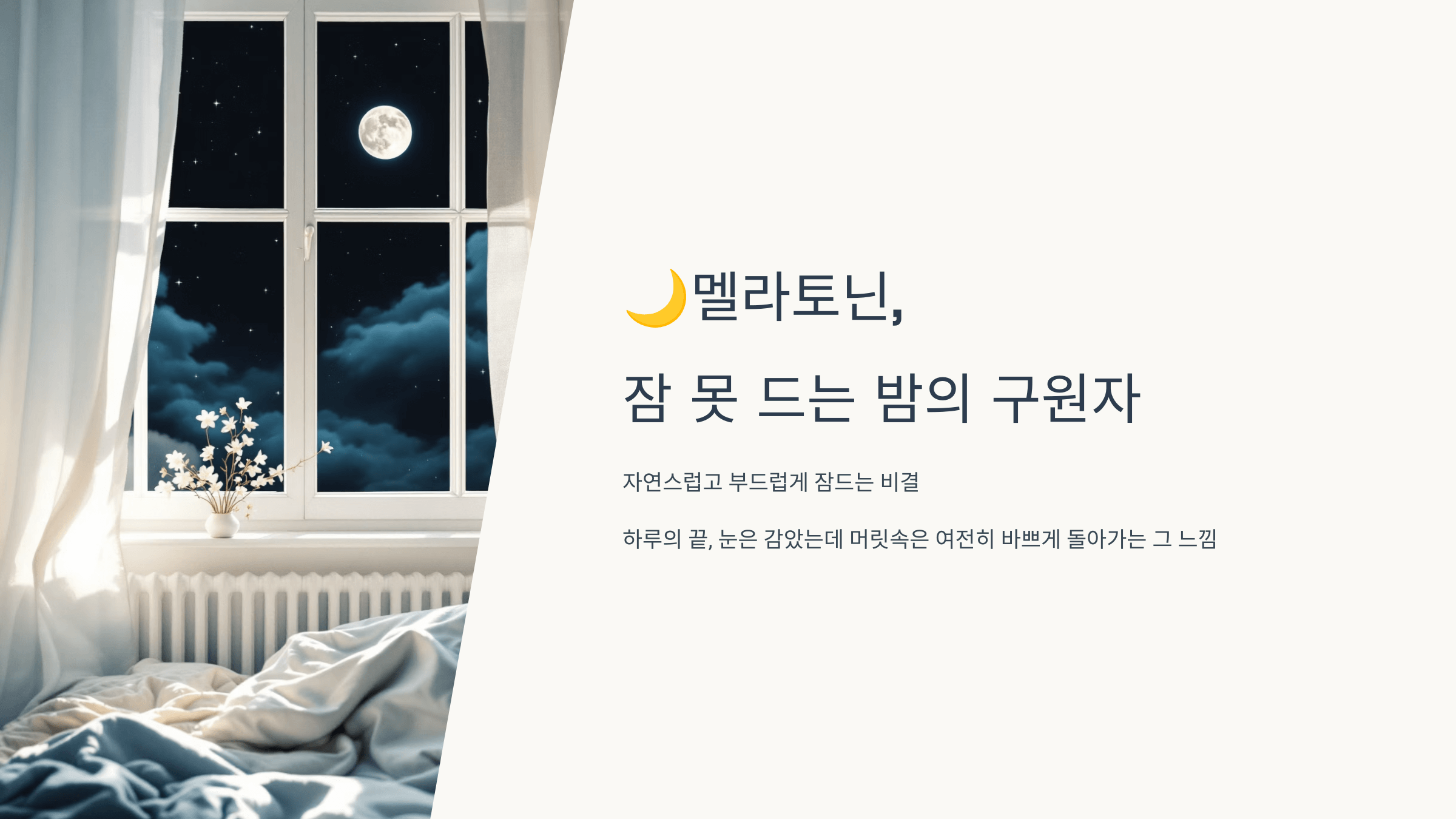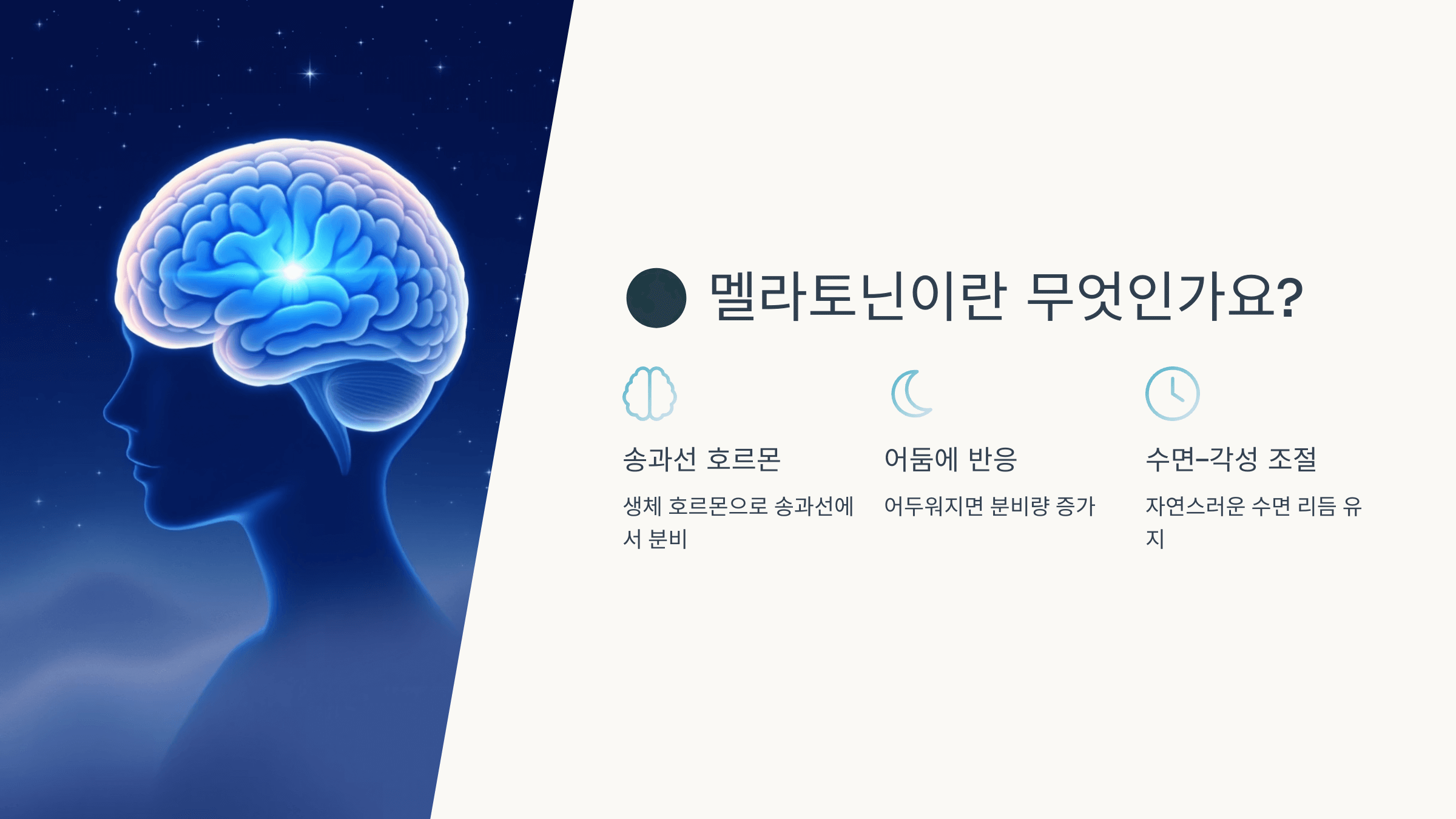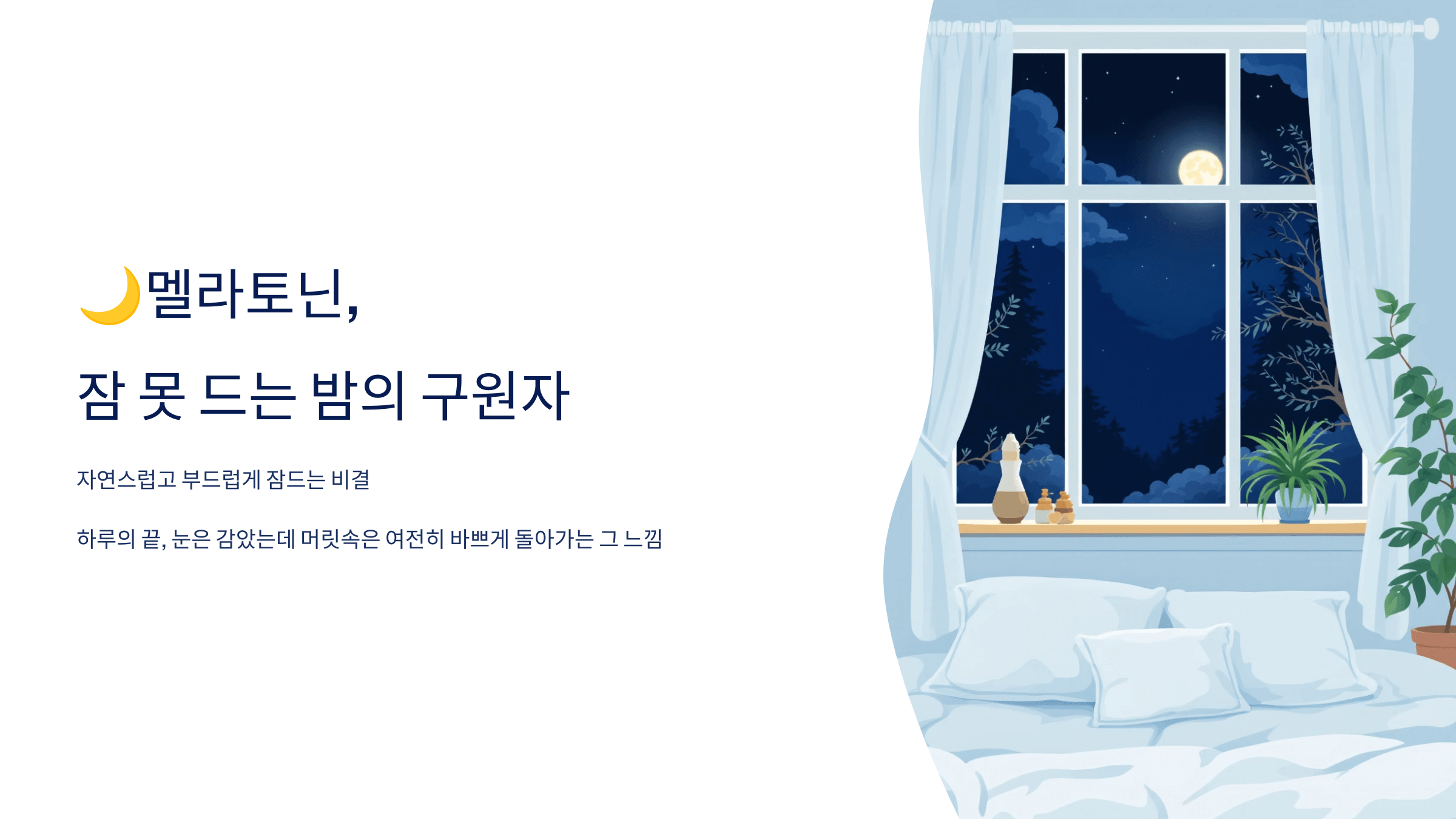 저도 몇 년 전부터 밤에 쉽게 잠들지 못하고 뒤척이는 일이 많아졌는데요, 그때 처음 알게 된 게 바로 ‘멜라토닌’이었어요.