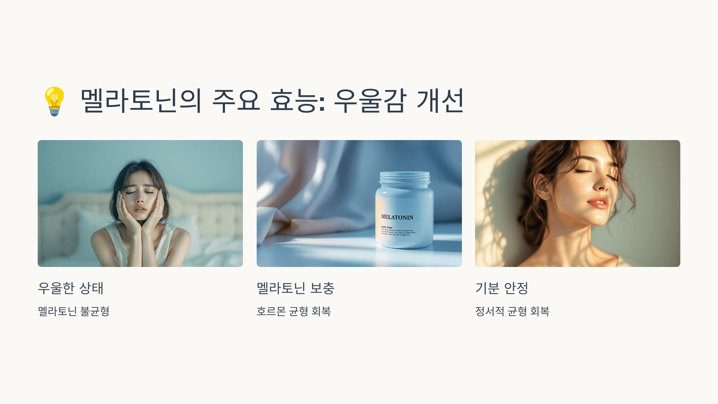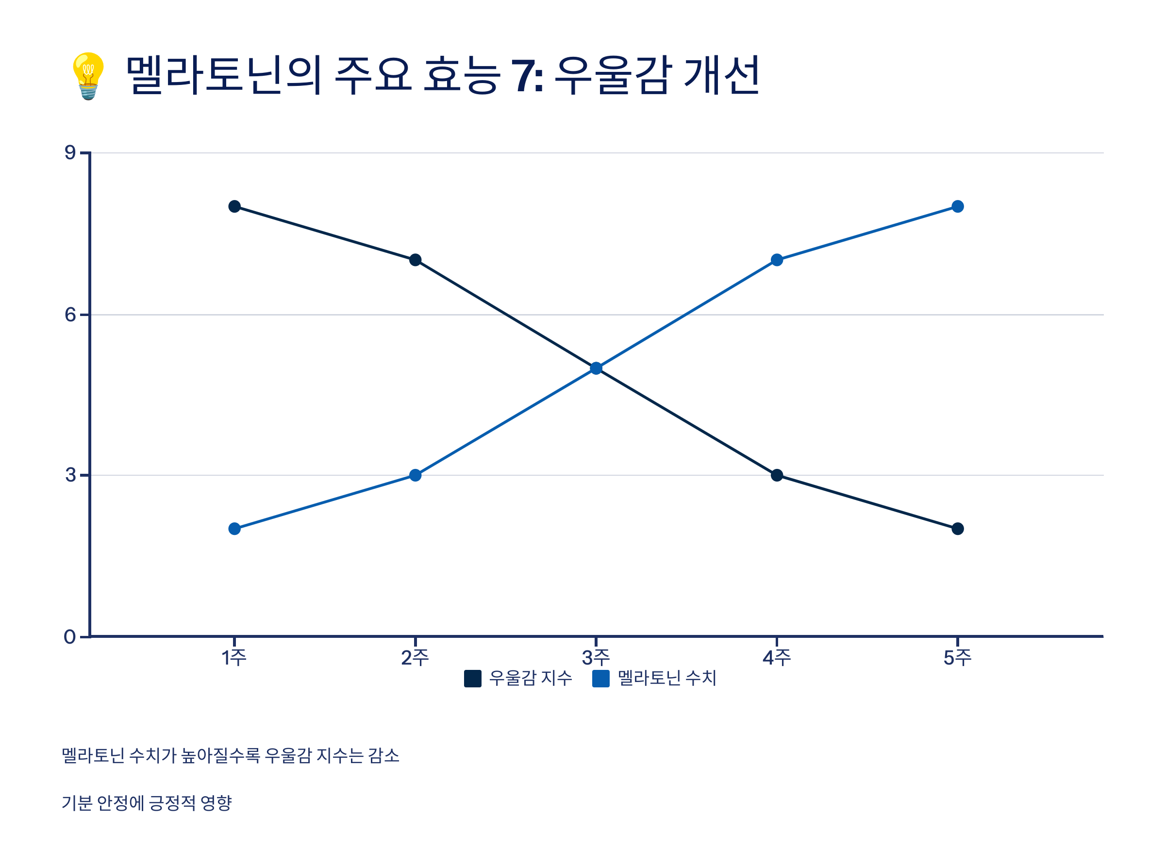 일부 연구에 따르면 멜라토닌은 기분 안정에도 긍정적인 영향을 줄 수 있다고 해요.