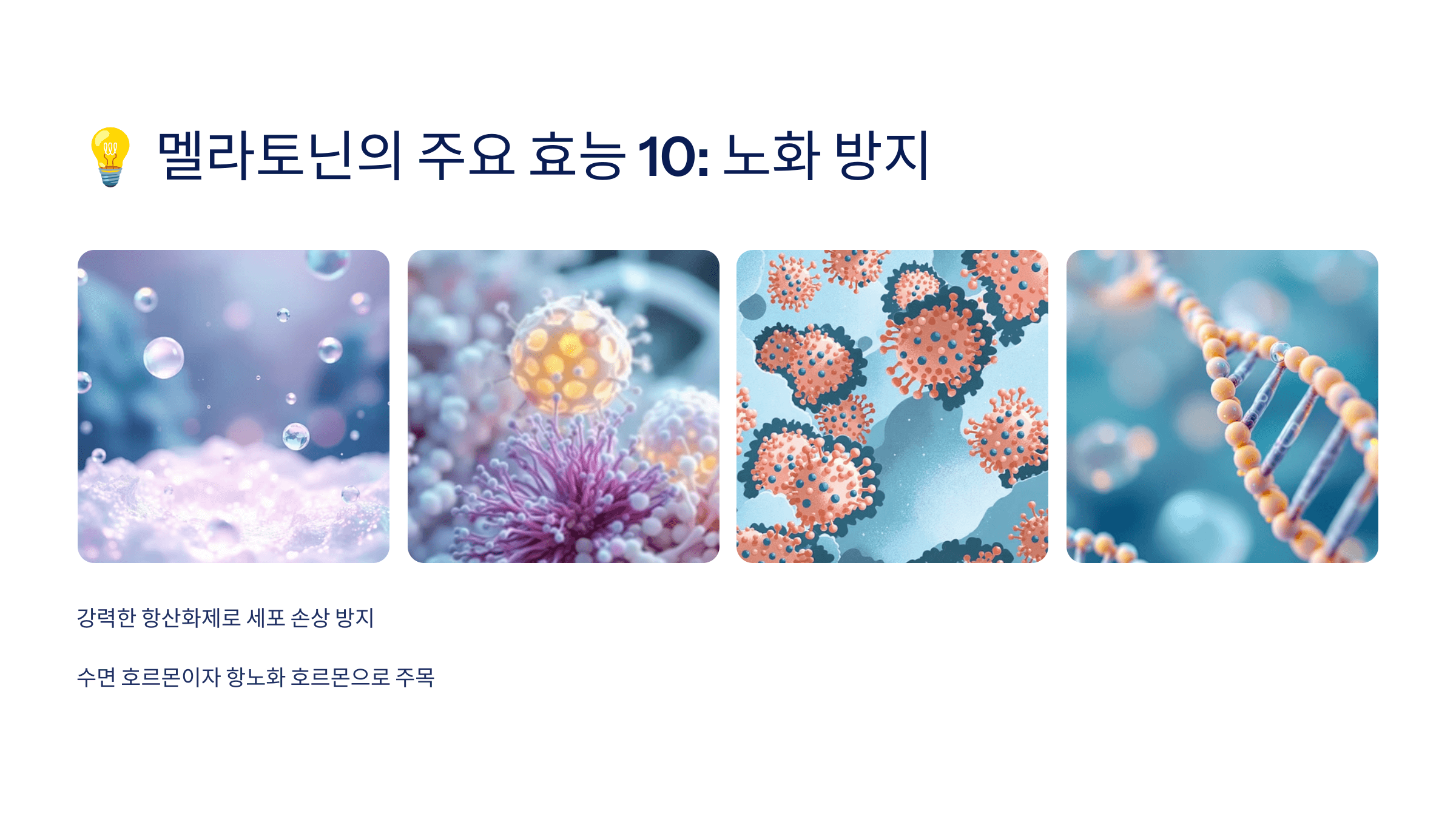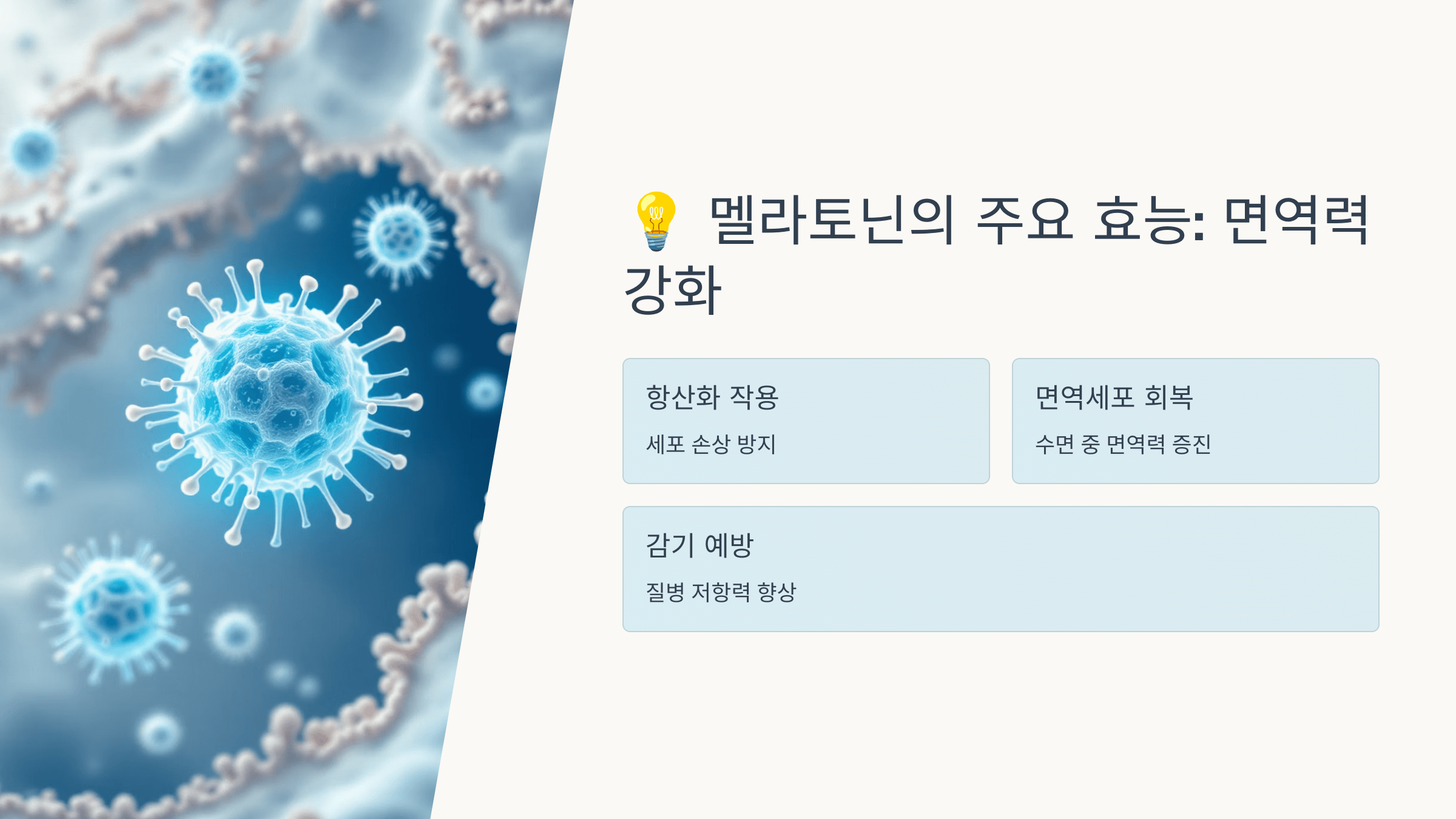 멜라토닌은 항산화 작용도 해요. 수면 중 면역세포 회복을 도와주니까 감기에도 덜 걸리게 되더라고요.