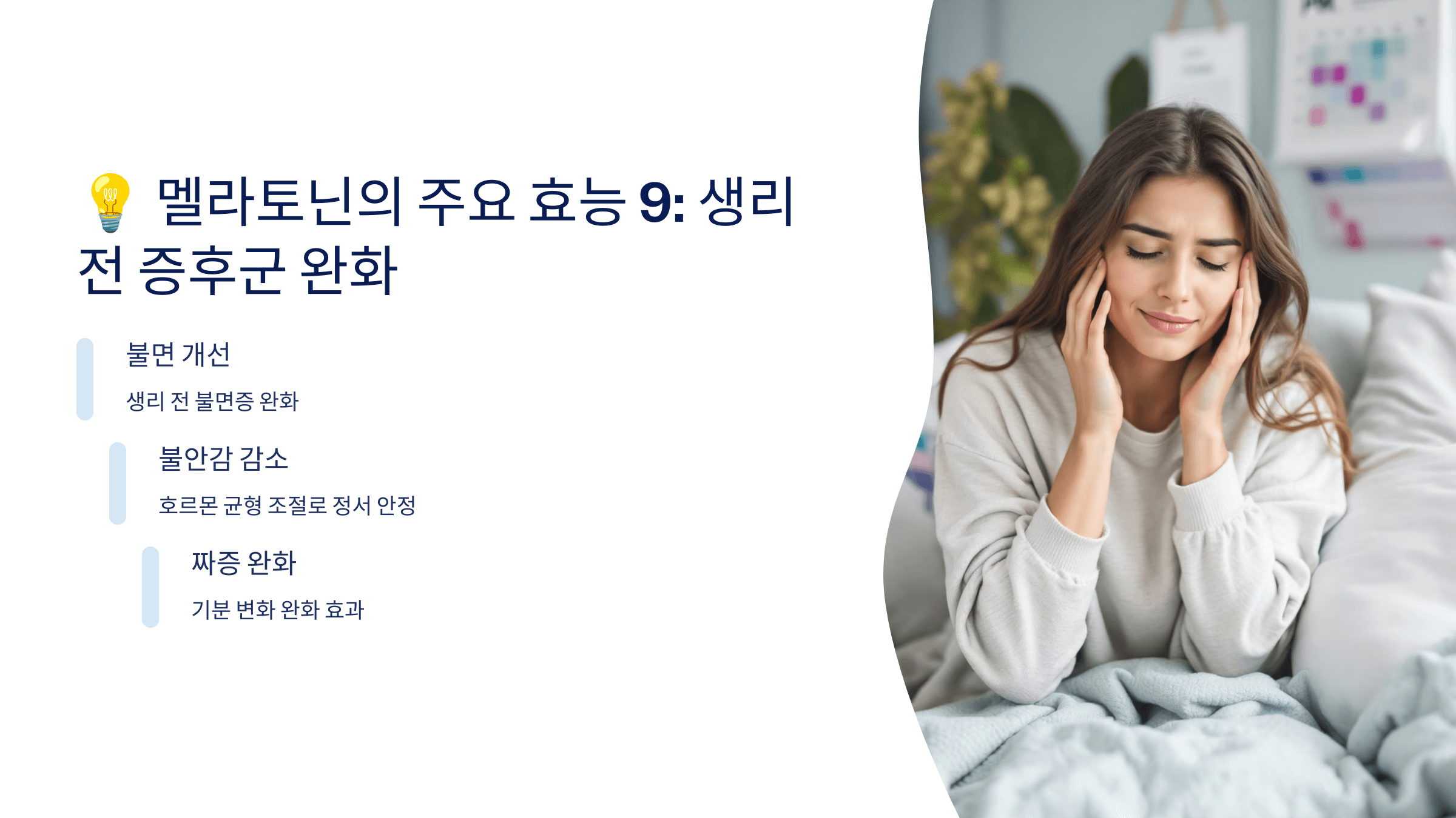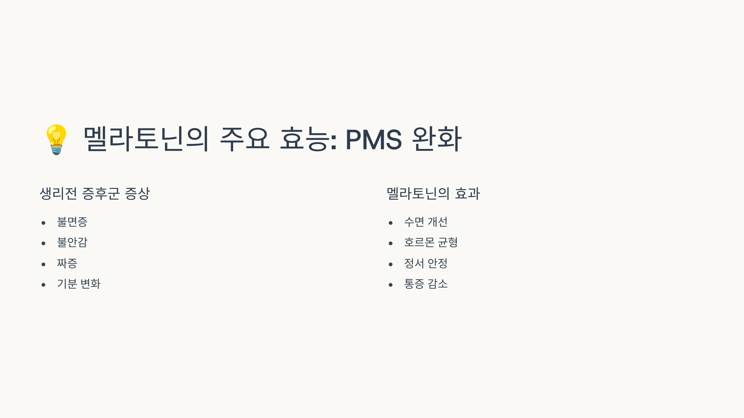 👉 멜라토닌이 생리주기 조절 및 기분 완화에 도움을 줄 수 있어요.