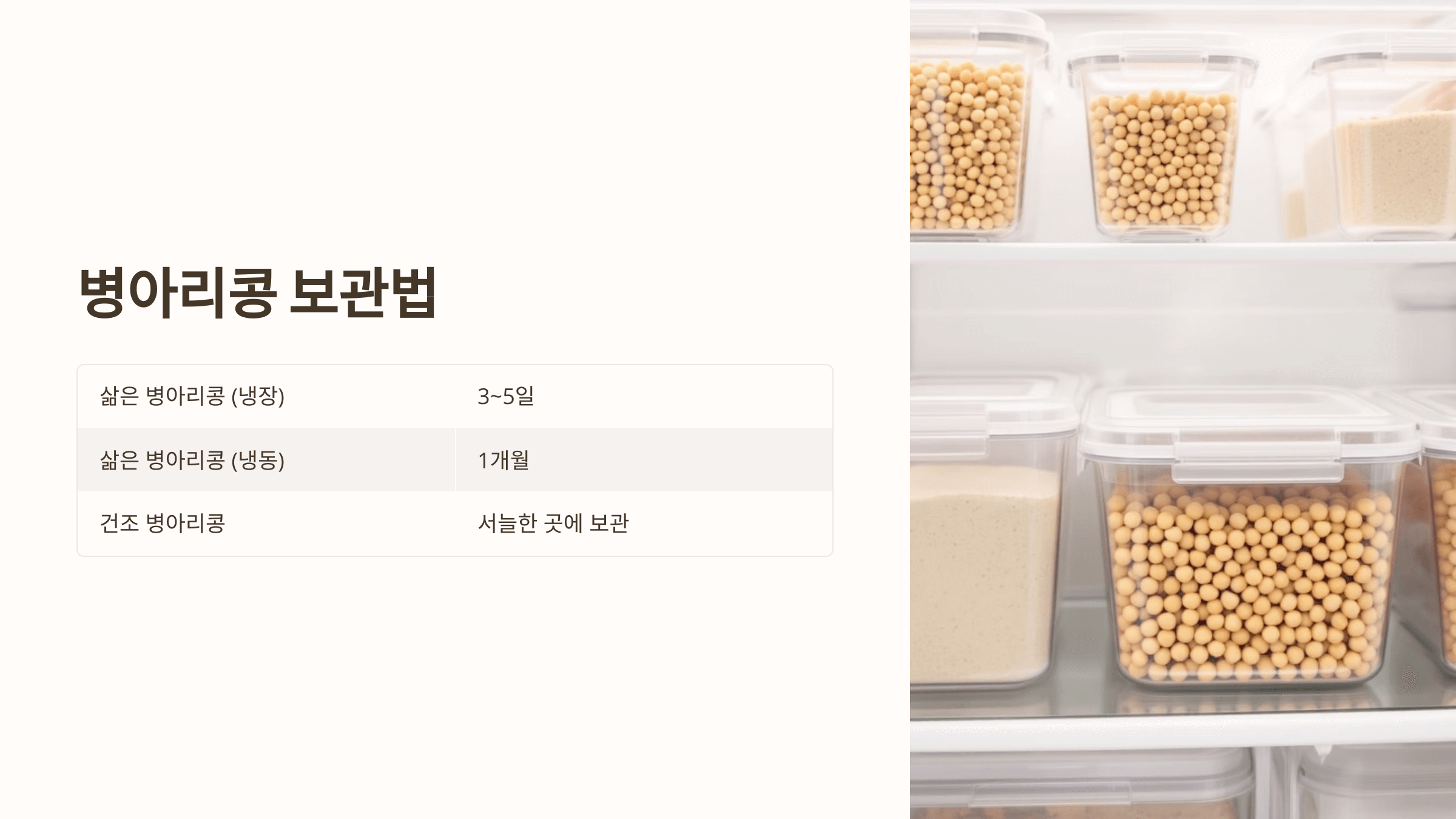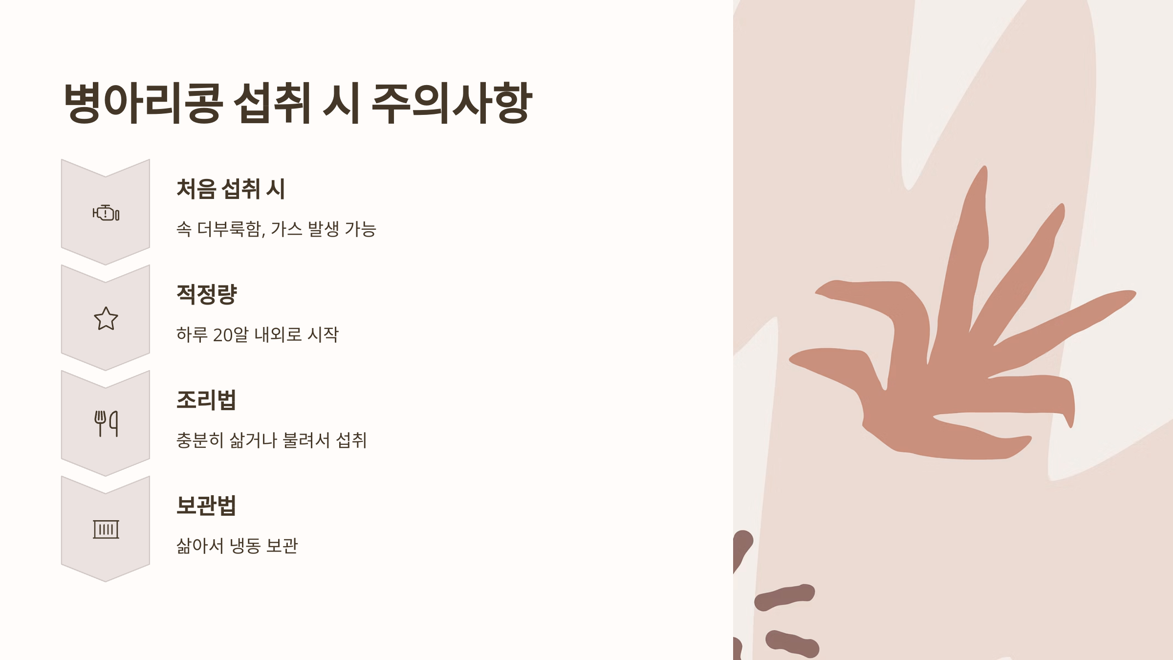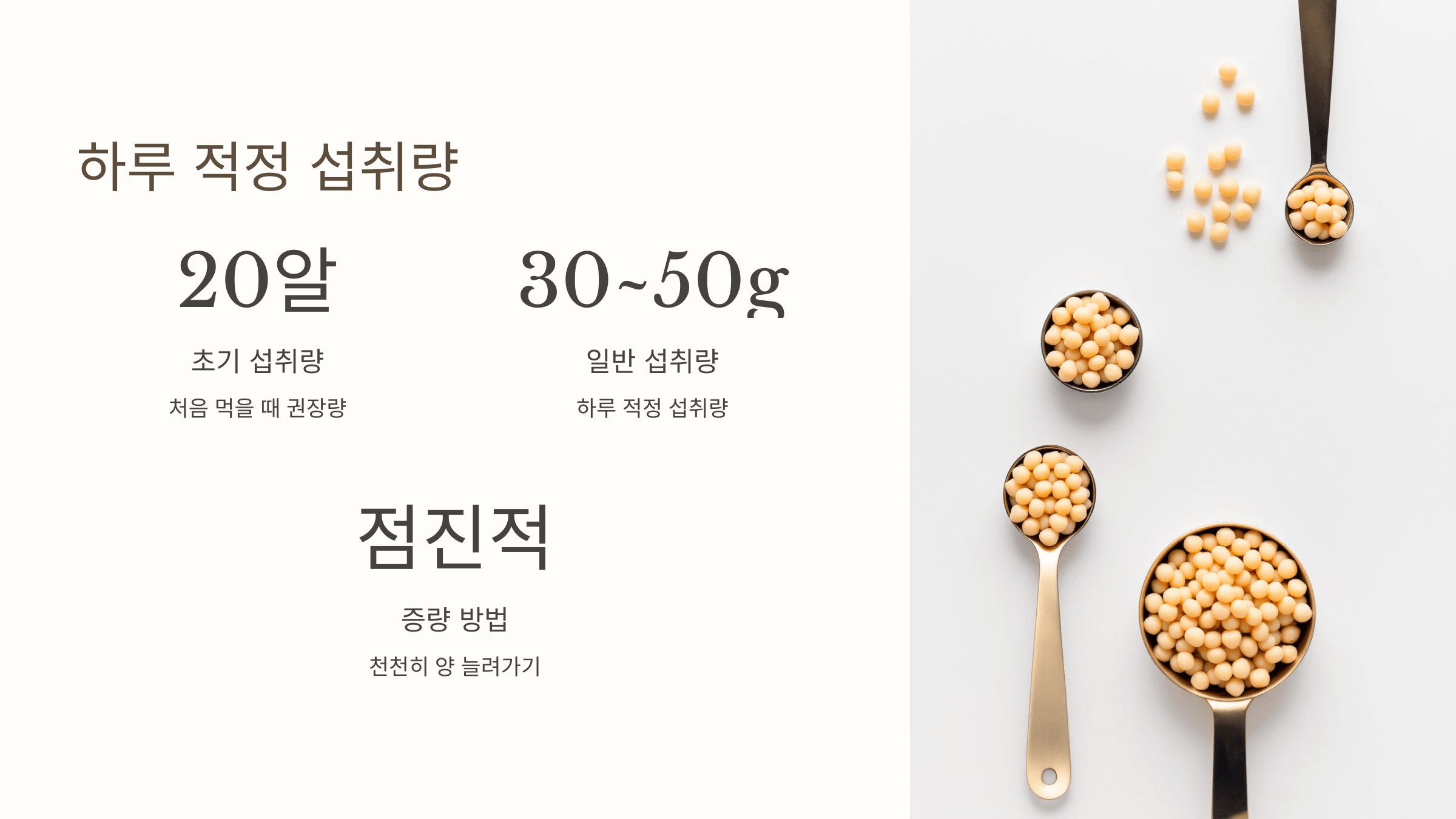 또한, 날콩 상태로는 소화에 부담을 줄 수 있으므로 충분히 삶거나 불려서 익혀드시는 게 중요해요. 저는 주말에 대량으로 삶아 냉동 보관해두고 필요할 때 꺼내 먹곤 해요😊