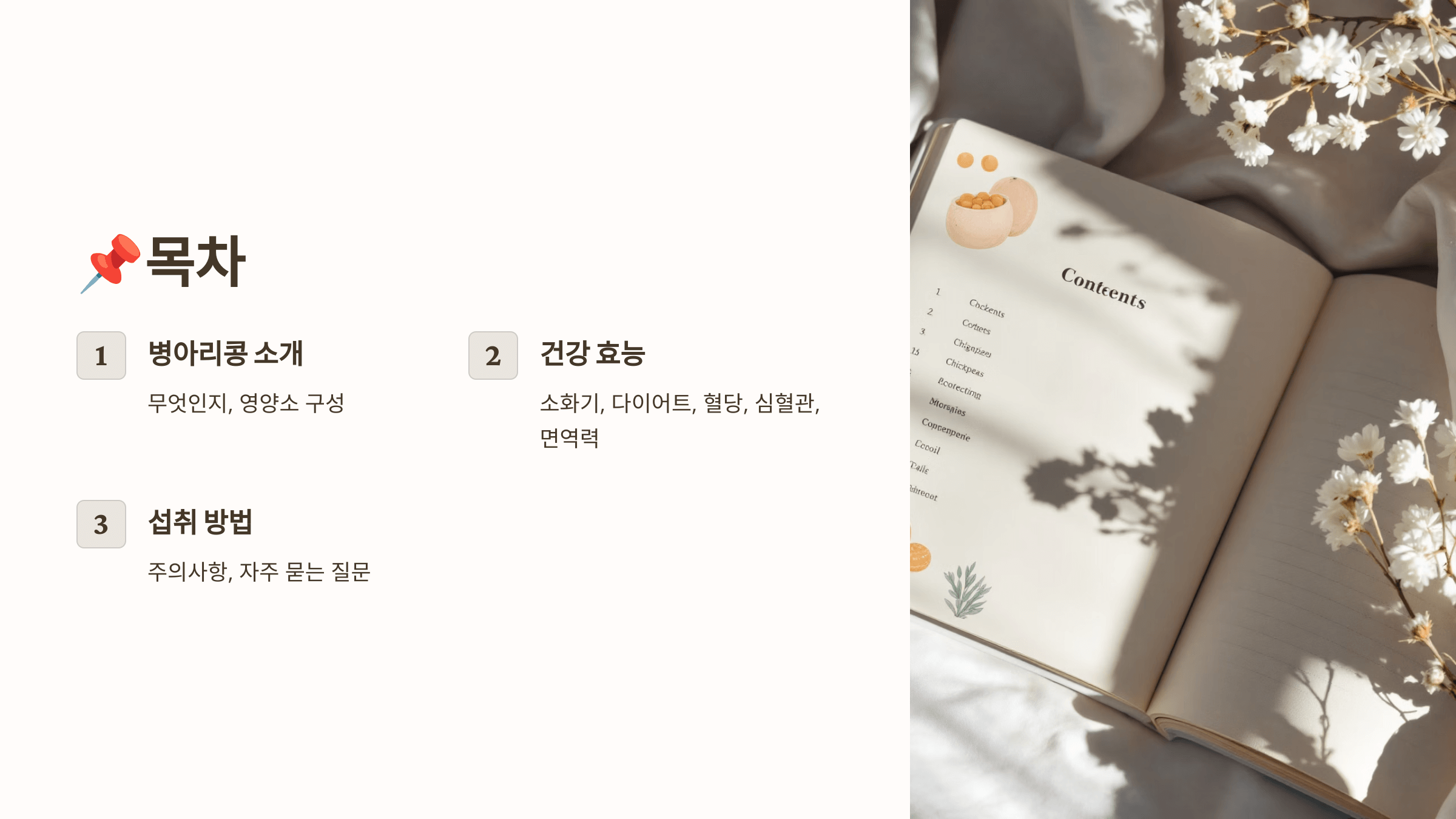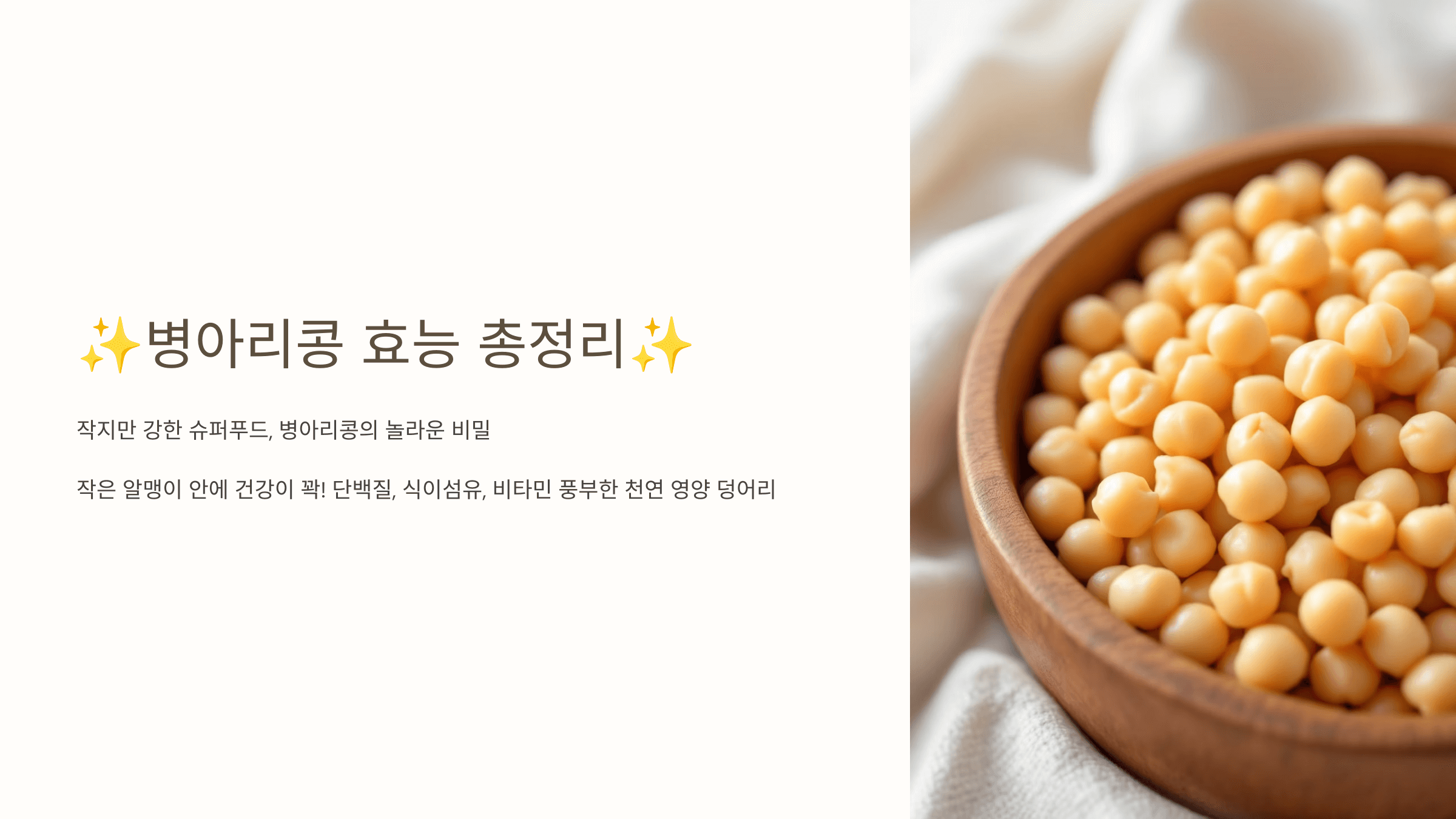 작은 알맹이 안에 건강이 꽉! 병아리콩은 단순한 콩이 아니에요. 단백질부터 식이섬유, 각종 비타민까지 풍부하게 담긴 천연 영양 덩어리랍니다. 요즘 건강에 관심 있는 분들이라면 한 번쯤 들어봤을 병아리콩, 과연 어떤 효능이 있을까요? 실제로 섭취해본 경험을 바탕으로 자세히 풀어드릴게요😊