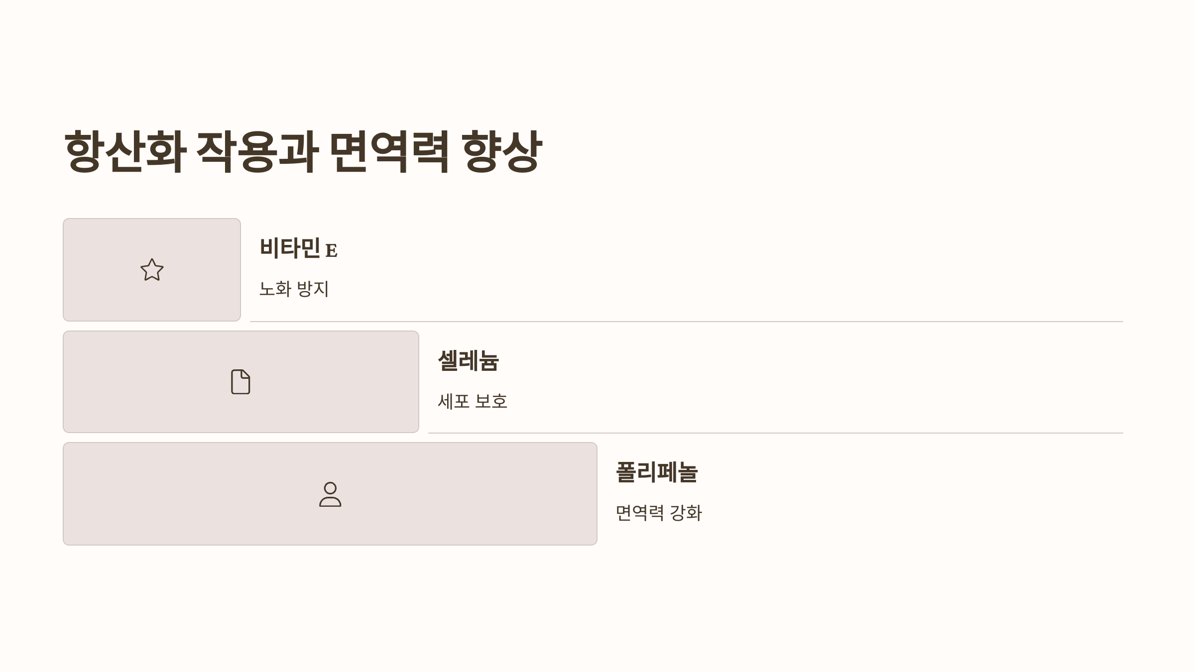 병아리콩은 비타민 E, 셀레늄, 폴리페놀 같은 항산화 성분이 풍부해서 우리 몸의 노화를 늦추고 면역력을 높여줘요.