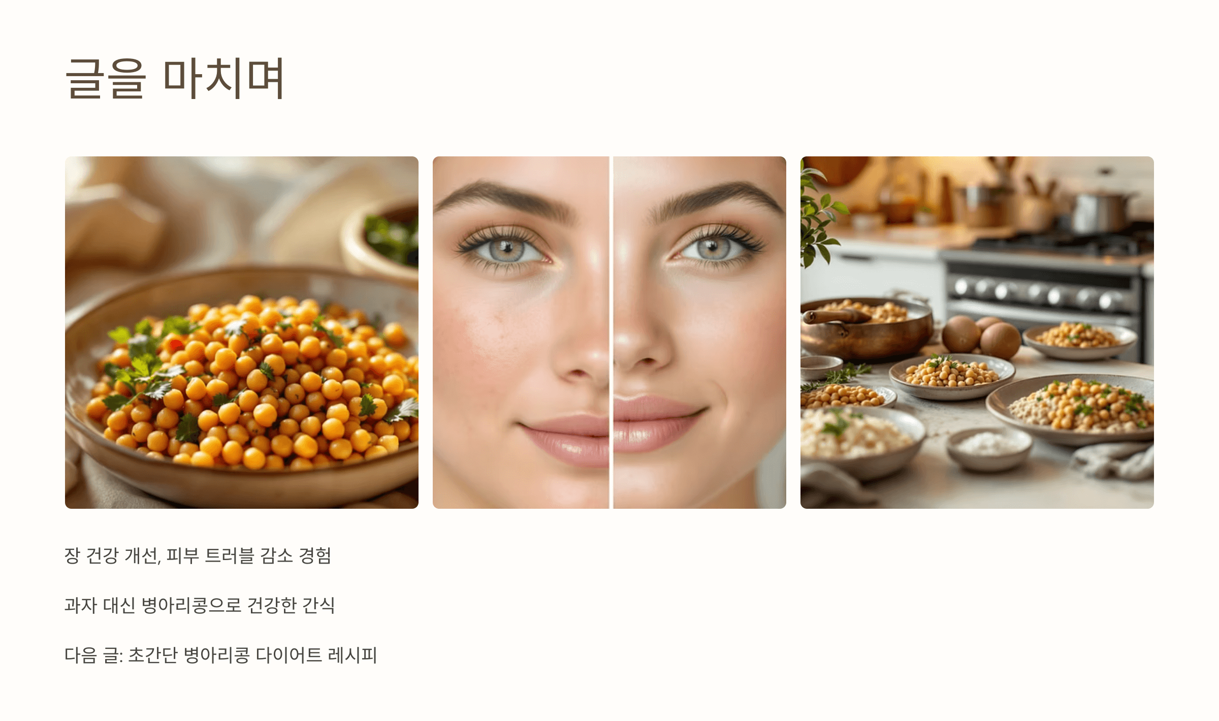 특히 과자나 군것질을 병아리콩으로 바꾸면서 피부 트러블도 줄었답니다.