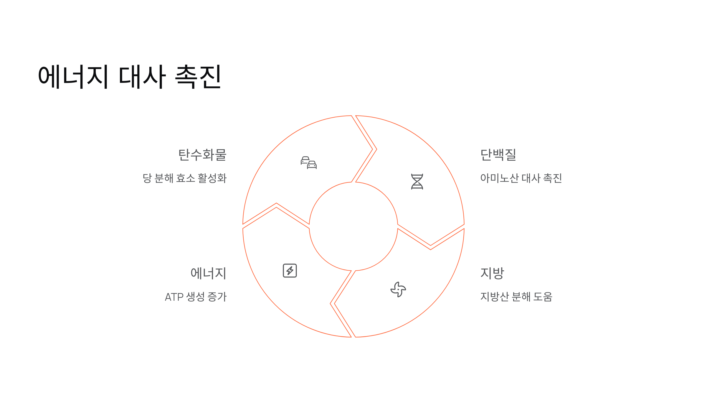 탄수화물, 단백질, 지방을 에너지로 전환해주는 효소 작용을 돕는 역할을 해요.