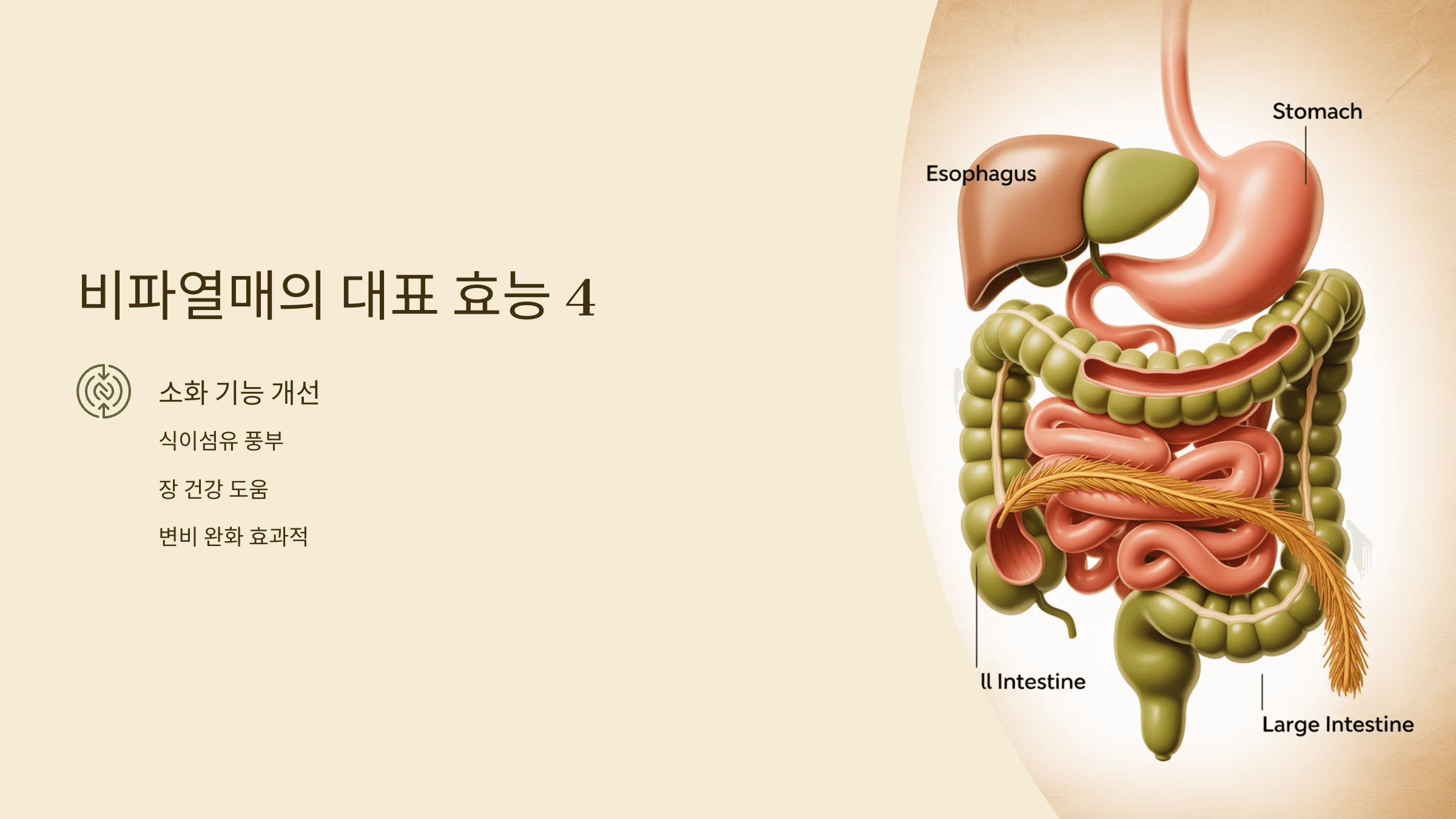 식이섬유가 많아 장 건강을 도와주고, 변비 완화에도 효과적이에요.