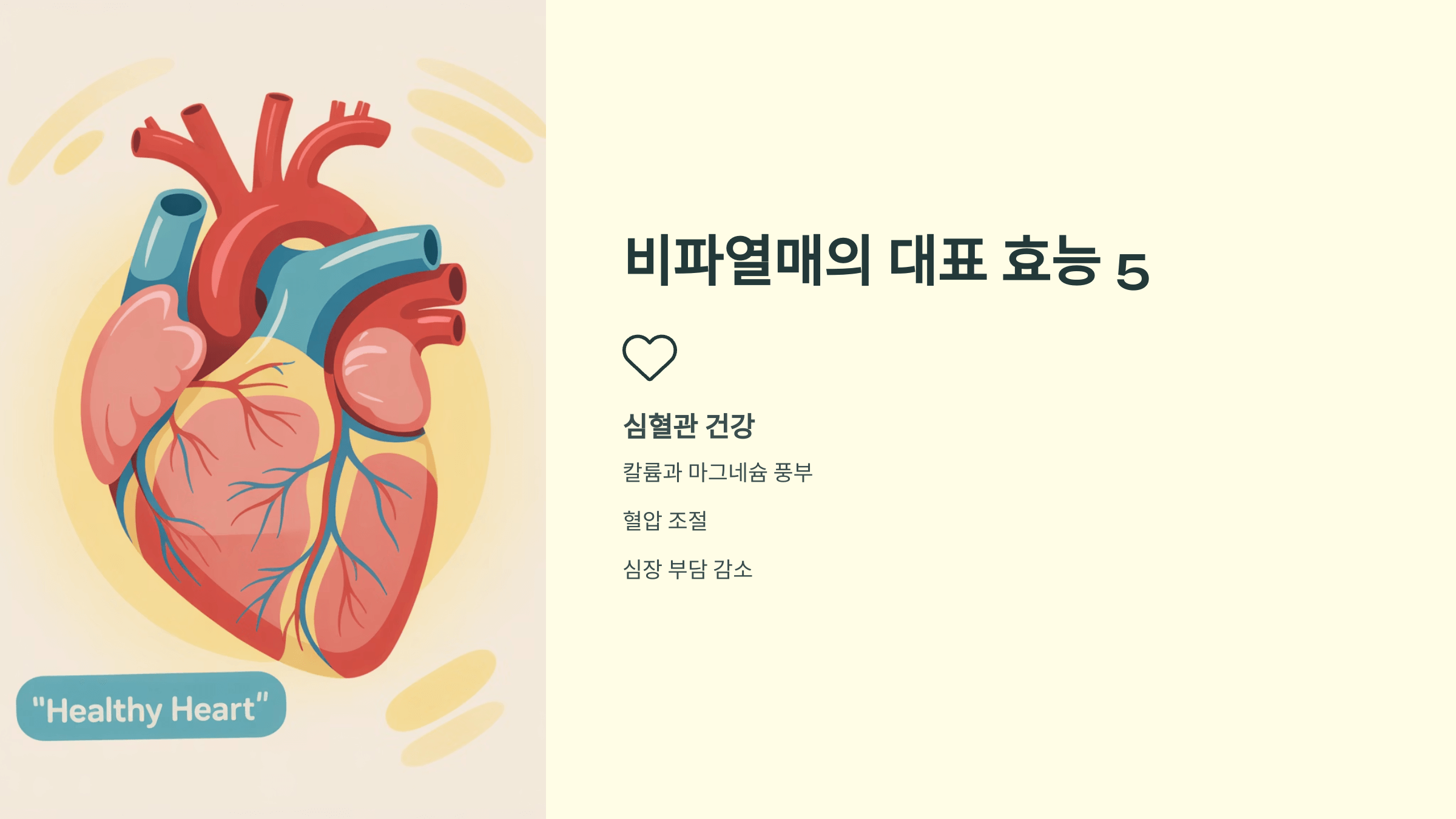 칼륨과 마그네슘이 풍부해서 혈압 조절과 심장 부담을 줄여줘요.