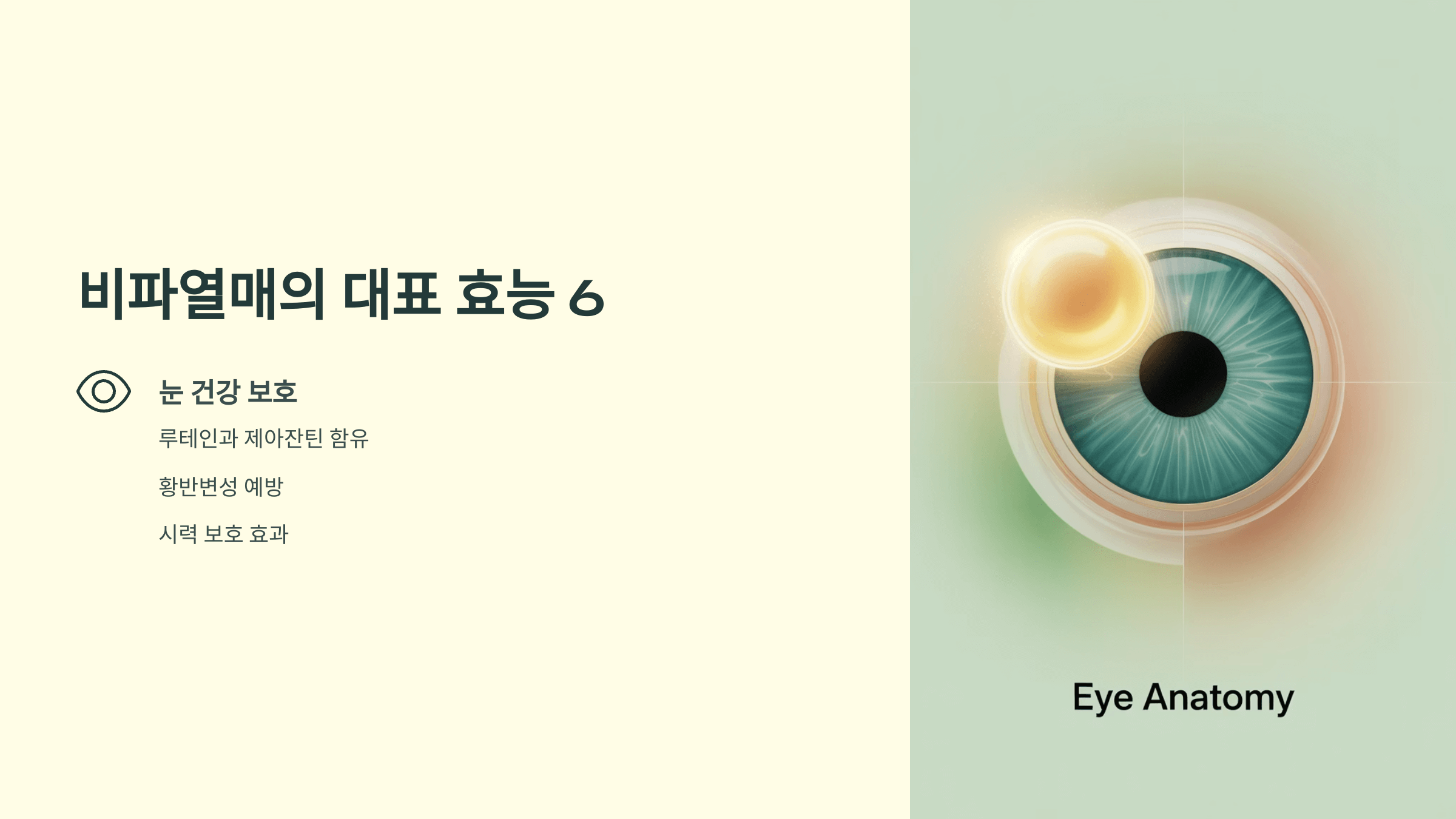 루테인과 제아잔틴이 들어 있어서 황반변성 예방에도 효과적이에요.