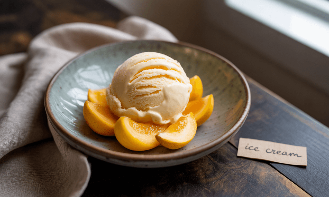 - 아이스크림 위에 비파 열매 슬라이스 얹어보세요. 고급 디저트 느낌 제대로!
