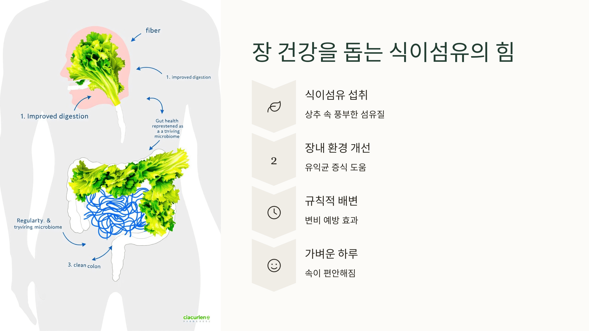 특히 현대인들이 자주 겪는 장트러블에는 꾸준한 식이섬유 섭취가 필수입니다.