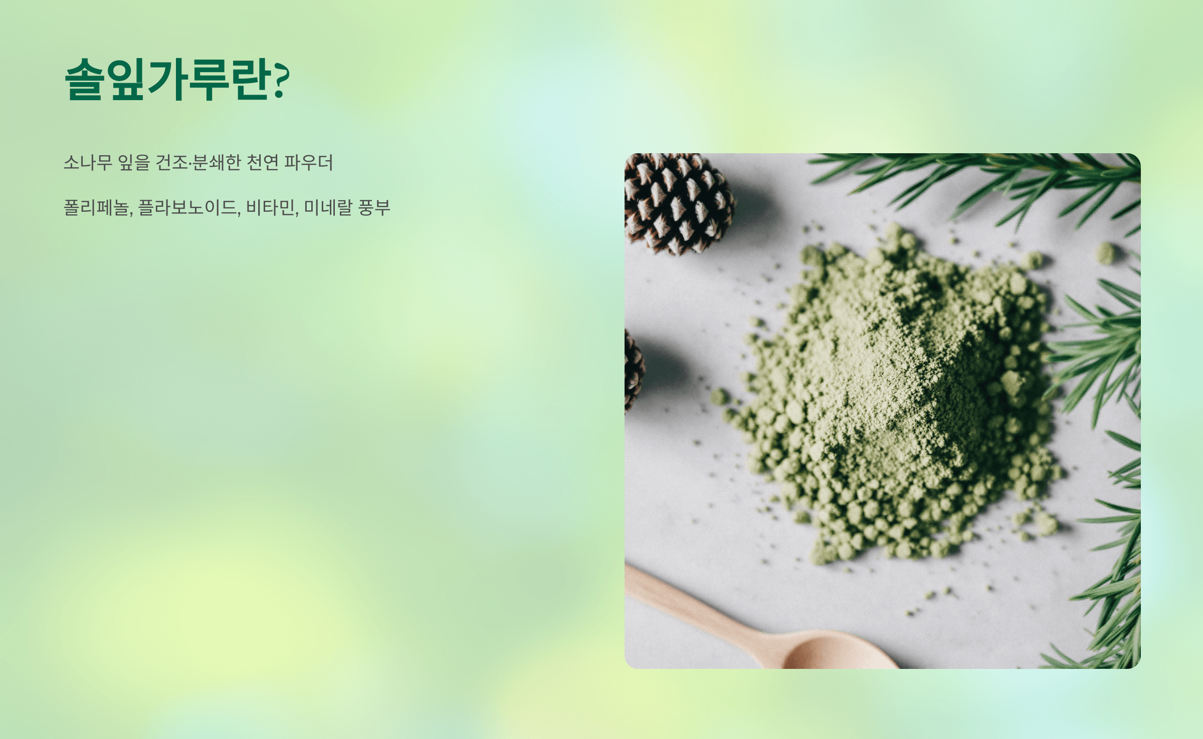 솔잎가루는 작지만 자연이 준 강력한 슈퍼파우더예요.