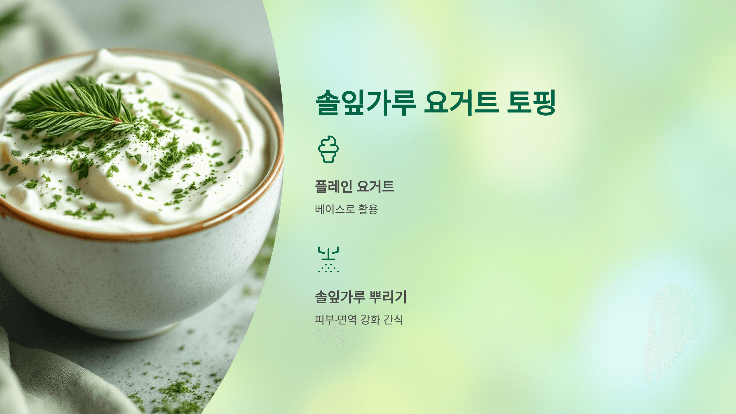 플레인 요거트에 솔잎가루를 뿌리면 피부·면역 강화 간식이 됩니다. - 솔잎가루 샐러드 드레싱 🥗