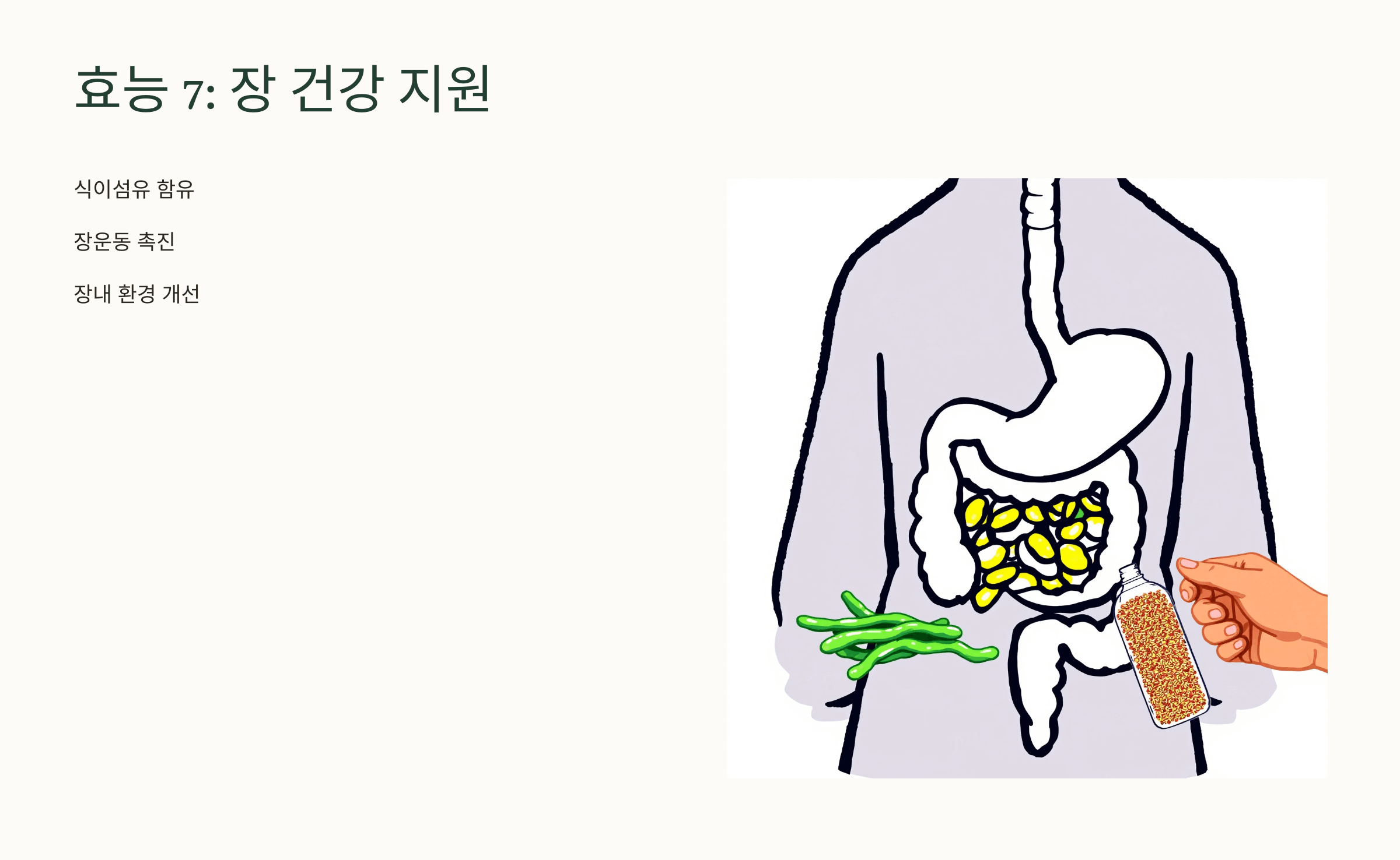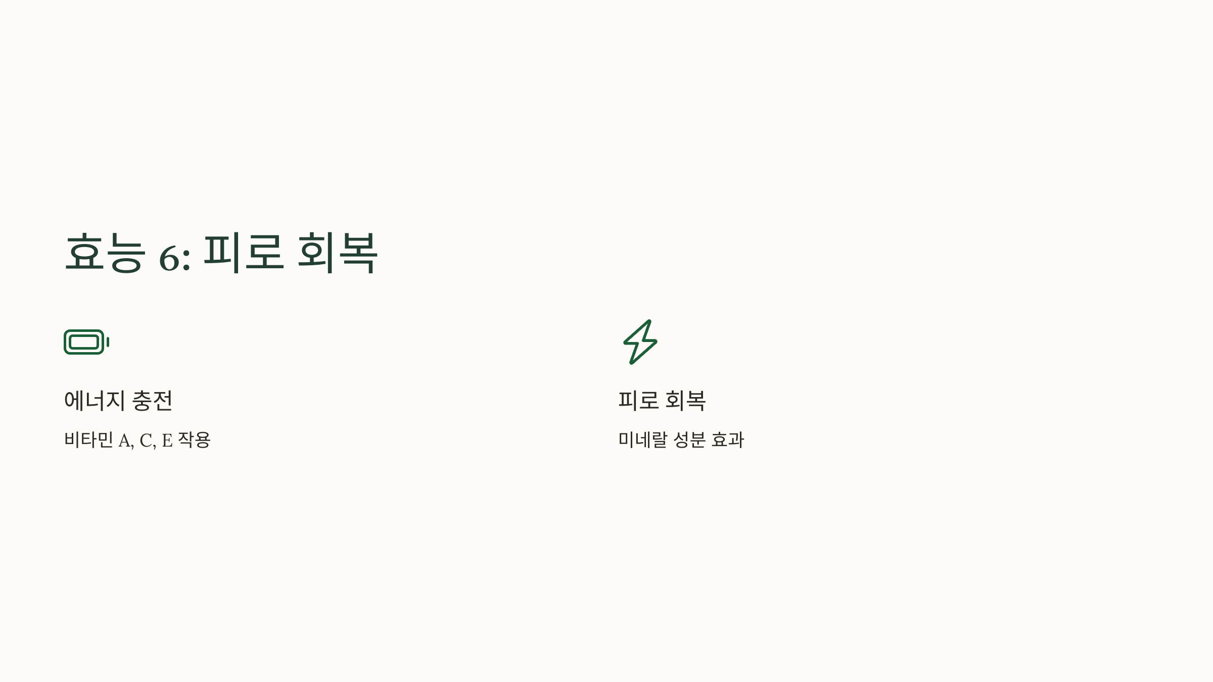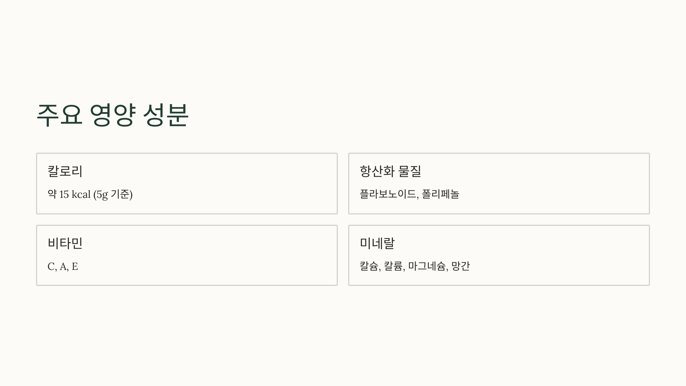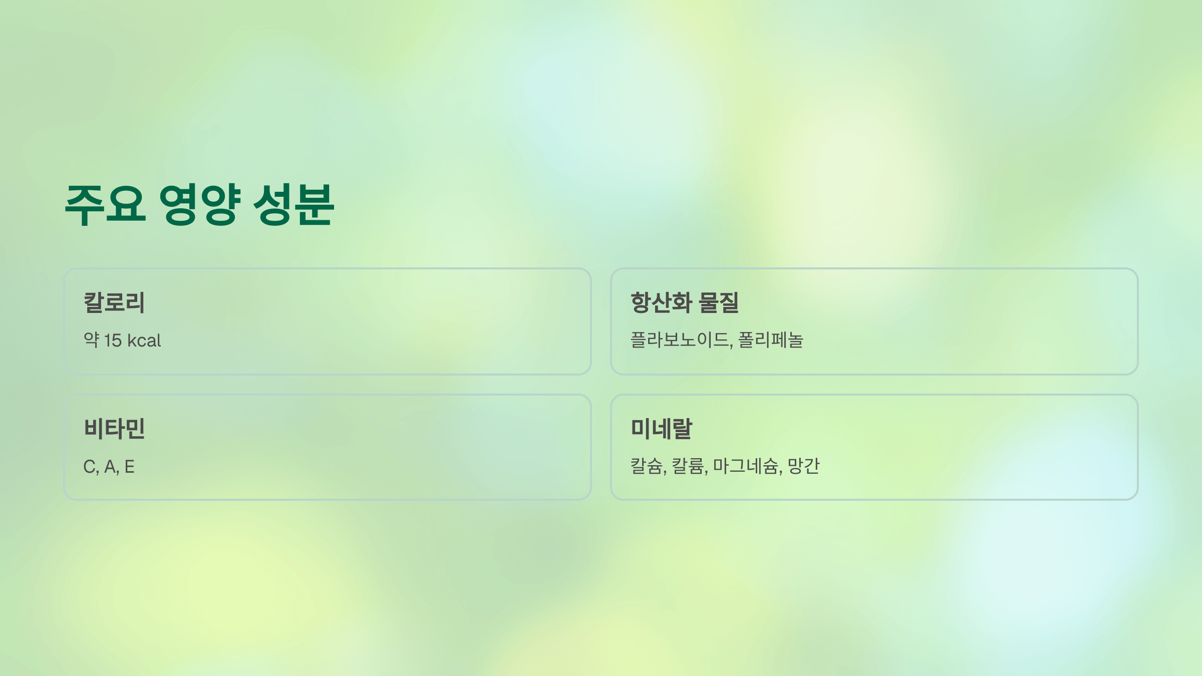 - 미네랄: 칼슘, 칼륨, 마그네슘, 망간
