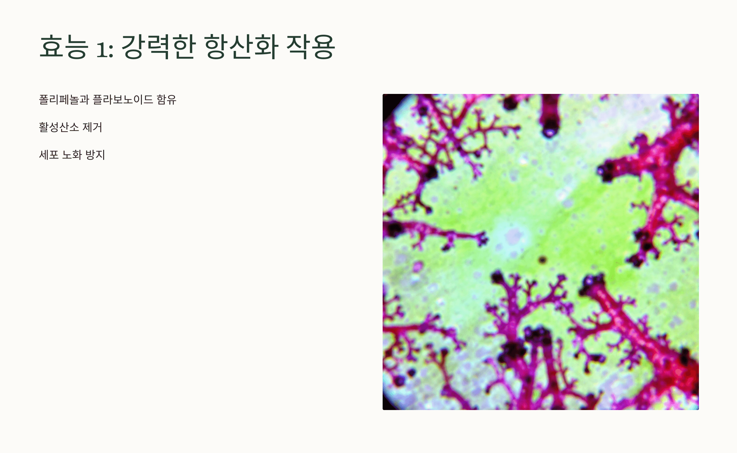 면역·피부·소화·심혈관·스트레스 관리에 두루 유용합니다. - 차부터 스무디, 샐러드, 디저트까지 어디에나 척척 어울려요!