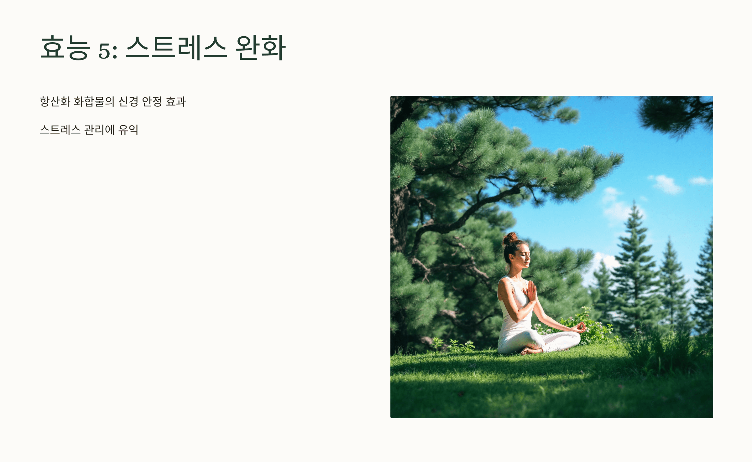 솔잎가루 속 항산화 화합물은 신경 안정 효과를 발휘해 스트레스 관리에 유익합니다.