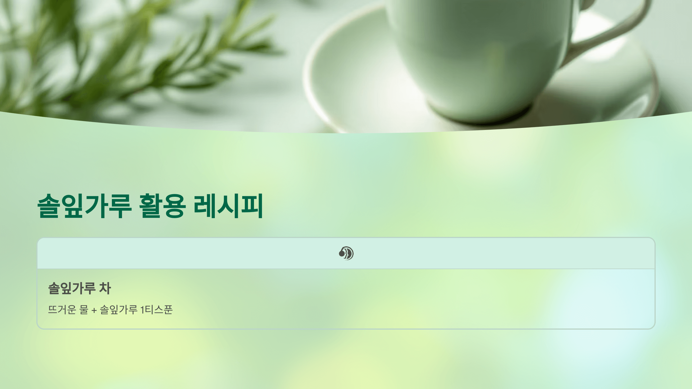👉 보통 1~3g, 한 꼬집(티스푼 1/2) 정도가 적당합니다. - 솔잎가루는 어떻게 먹는 게 좋나요?