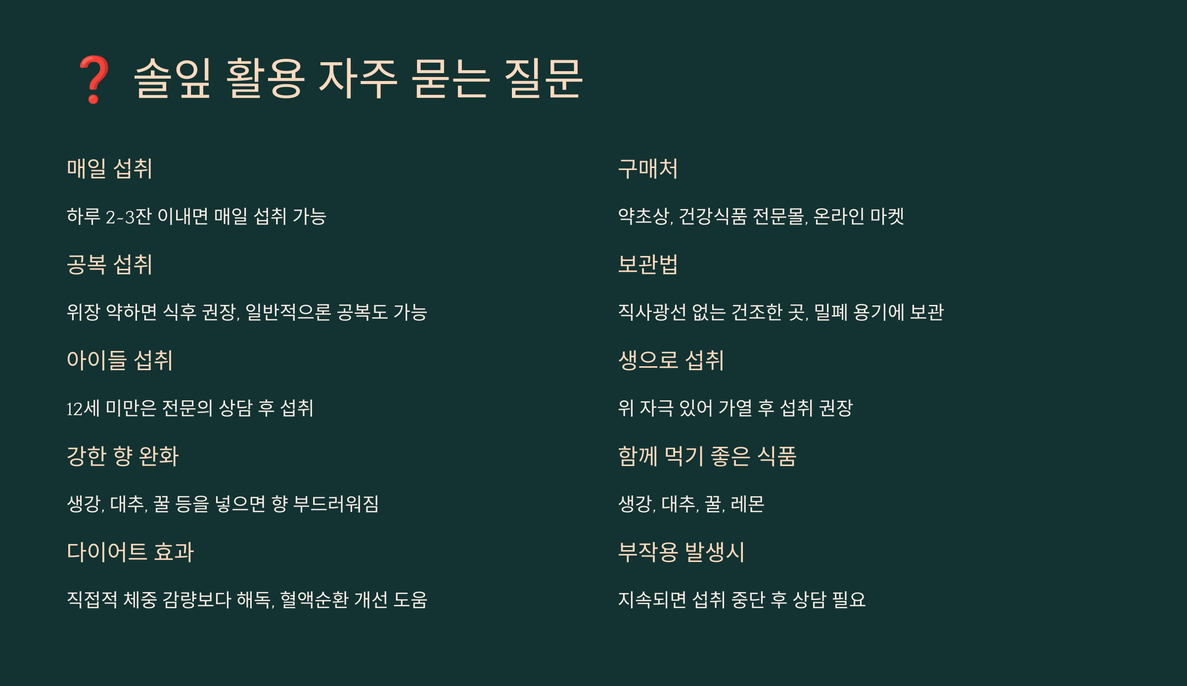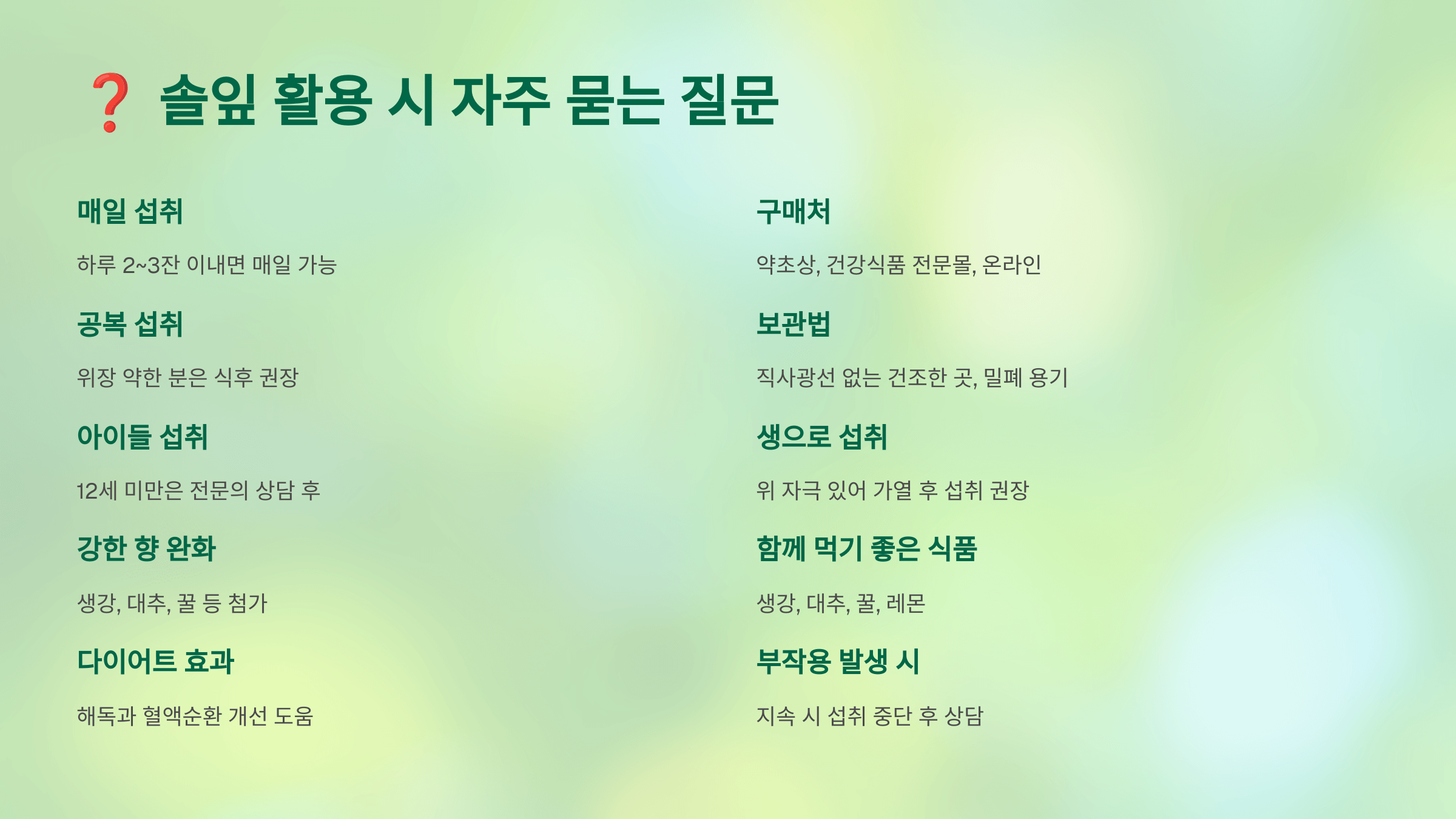 ❓ 솔잎 활용 시 자주 묻는 질문 (FAQ)