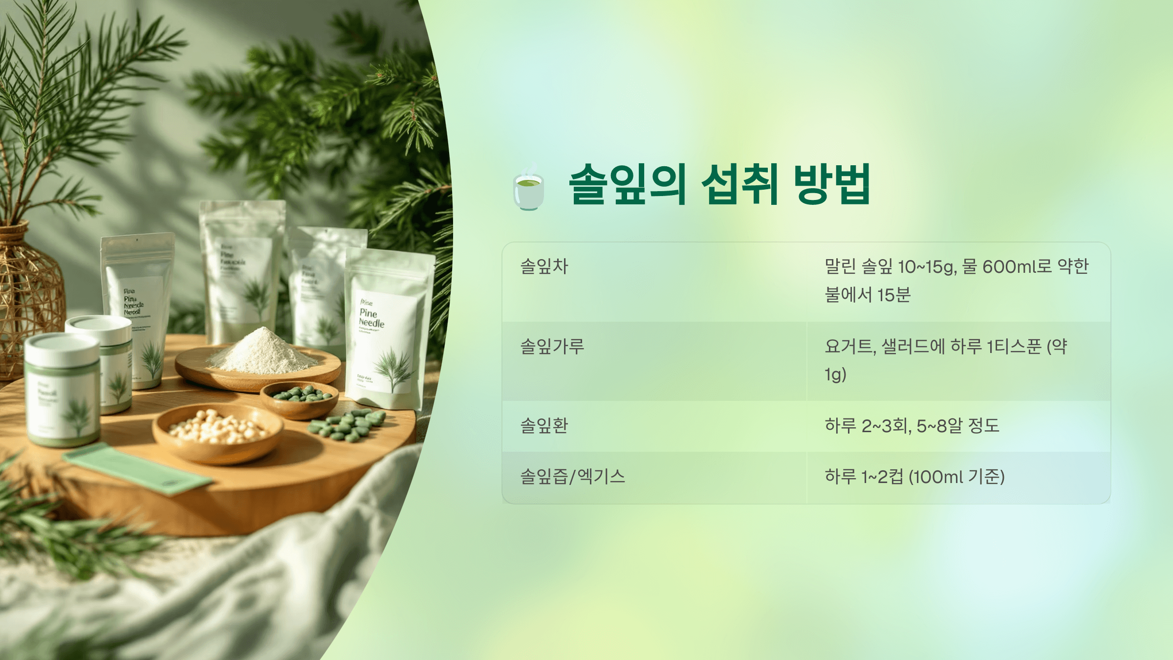 🍵 솔잎의 섭취 방법과 하루 권장량