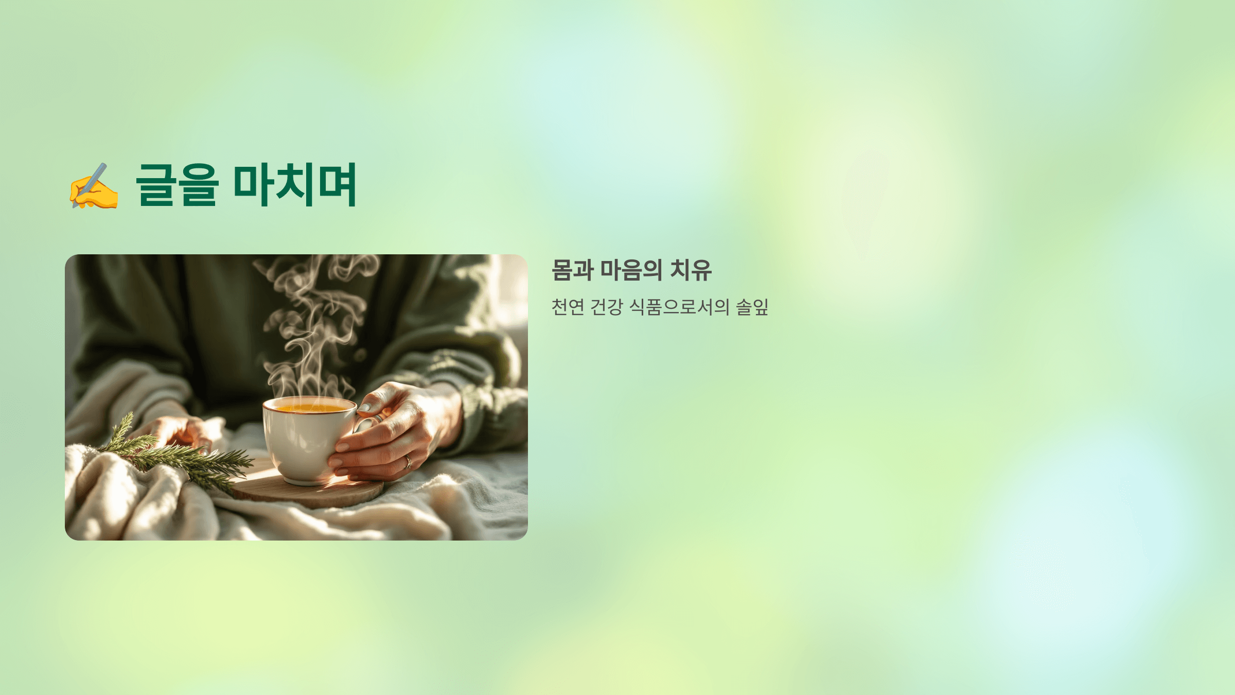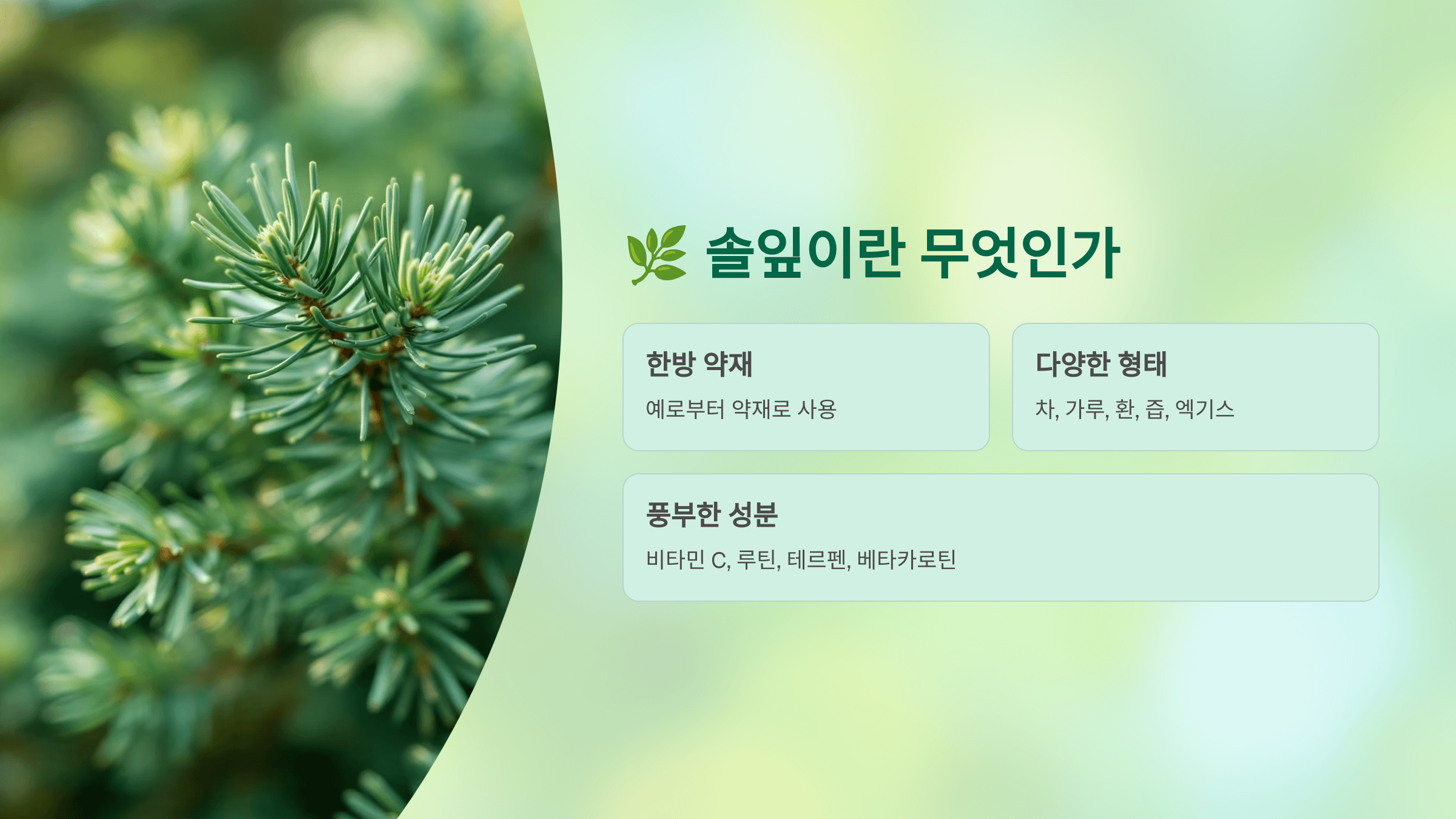 하지만 알고 보니 솔잎은 면역력 강화, 혈압 안정, 피부 개선까지