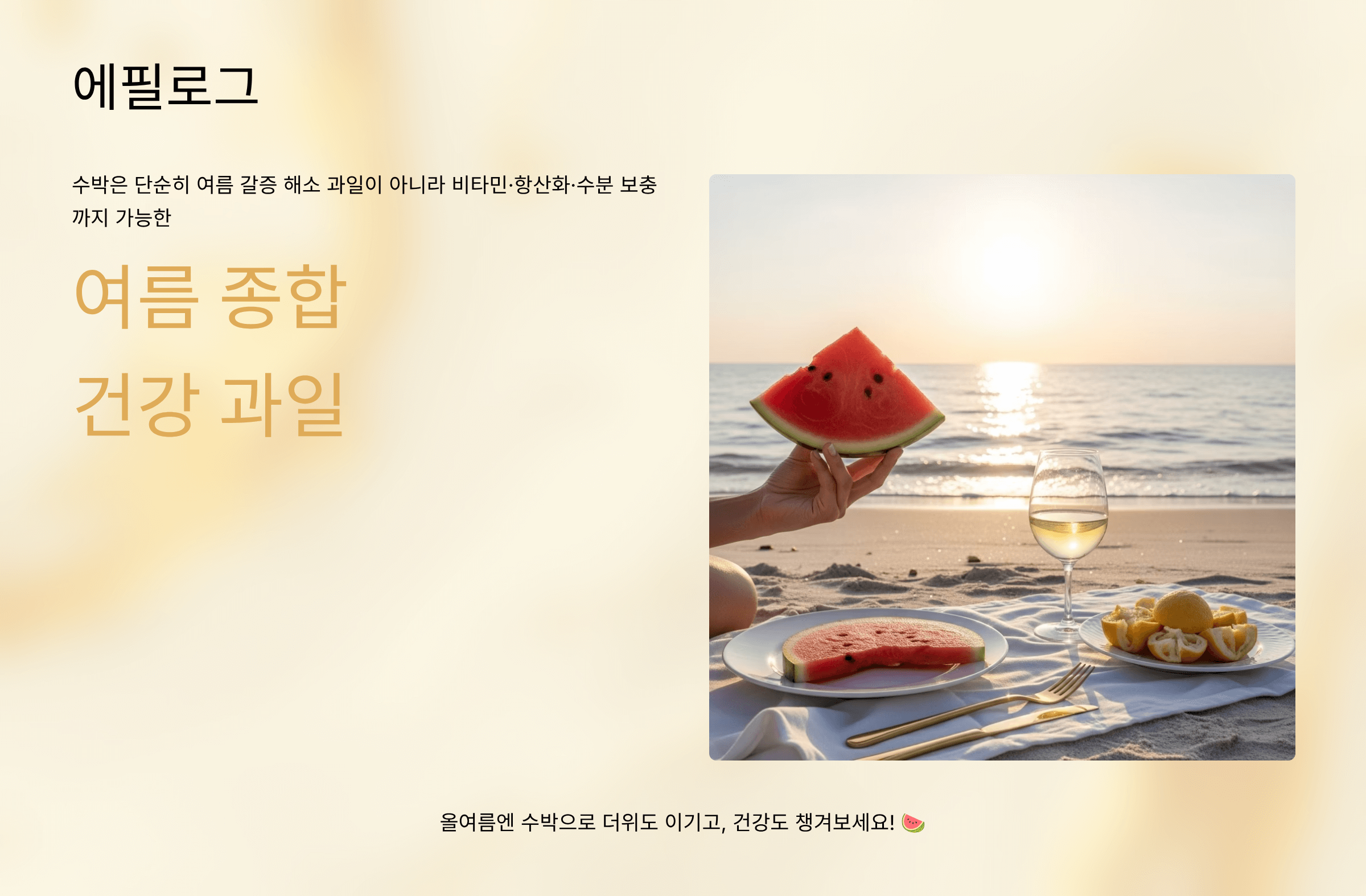 “한여름 더위에 시원한 수박 한 조각만큼 행복한 게 있을까요?”