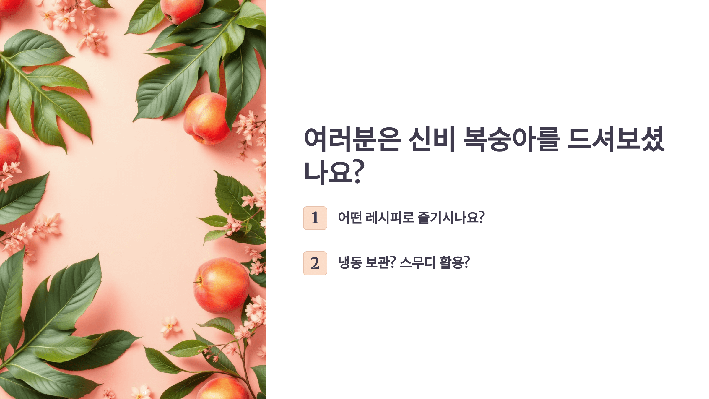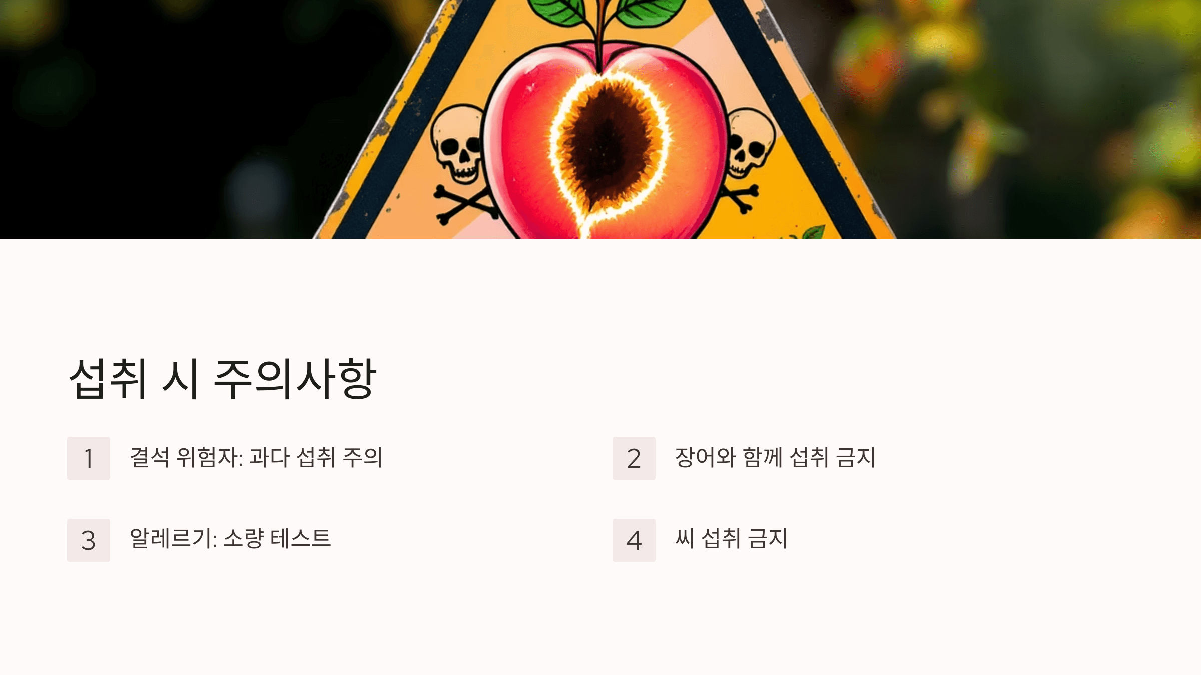 - ✅ 복숭아 알레르기가 있는 분은 처음엔 소량만 섭취해보세요.